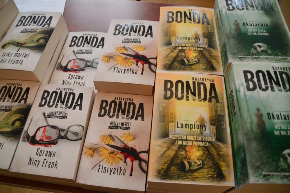 Katarzyna Bonda wpółpracuje z psychologiem policyjnym Hubertem Meyerem, z którym stworzyła trylogię „Sprawa Niny Frank”, „Tylko martwi nie kłamią, „Florystka”. Opowiadała o procesie twórczym, o inspiracjach, o mozolnych próbach zbierania materiałów, o zaskakujących wynikach swoich poszukiwań, o tym jak szybko rozwinęła się jej kariera.