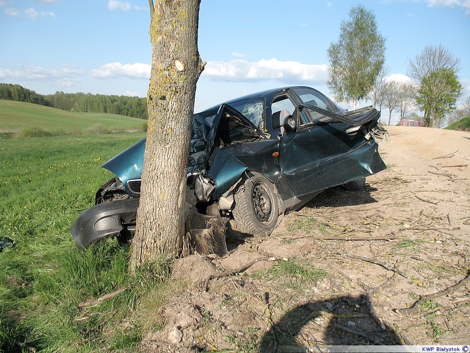 Kierujący samochodem daewoo lanos 31-letni mężczyzna na łuku drogi stracił panowanie nad pojazdem i uderzył przodem w przydrożne drzewo. W wyniku obrażeń poniósł śmierć na miejscu.
