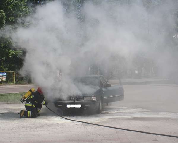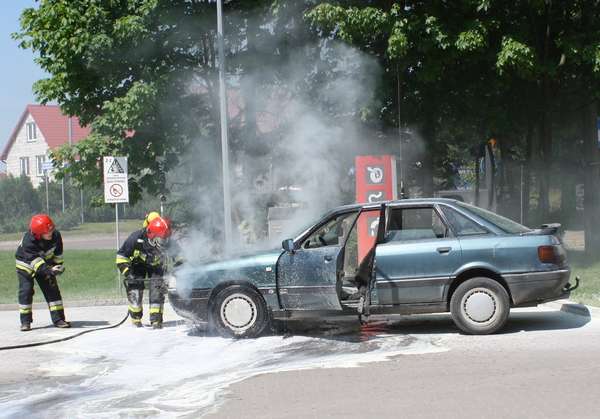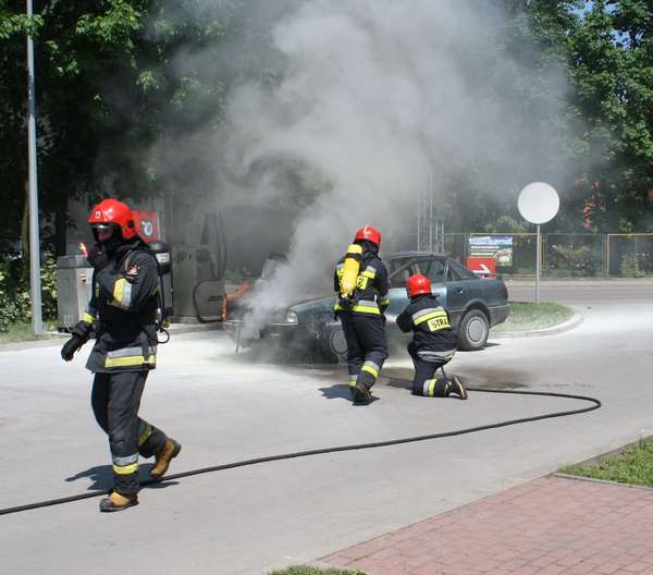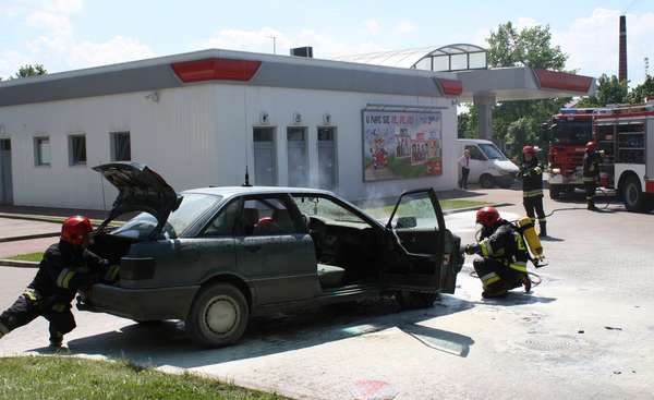 OkoÅ‚o 12.30 na stacjÄ™ paliw przy ul. Wojska Polskiego w Olecku wjechaÅ‚ samochód, z którego wydobywaÅ‚ siÄ™ gÄ™sty dym. Kierowca zatrzymaÅ‚ auto i uciekÅ‚ z niego wraz z dwójkÄ… pasażerów. Samochód stanÄ…Å‚ w pÅ‚omieniach. Na miejsce przyjechali strażacy. Zabezpieczyli miejsce i ugasili pożar za pomocÄ… piany. Zabezpieczyli również podziemne zbiorniki z paliwem.