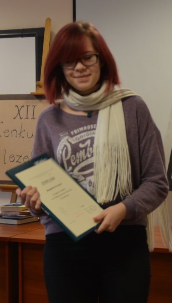 Drugie miejsce zajęła Magdalena Szczypiń z ZS nr 4, trzecie Przemysław Mordas z ZST, czwarte ex aequo Aleksandra Drobiszewska (ZS nr 4) i Mieszko Kosmowski (ZST). Przyznane zostały również wyróżnienia dla” Karoliny Bury (ZS nr 4), Sylwii Andruszkiewicz (ZS nr 4), Marii Leszczyńskiej (ZS nr 4), Michała Naruszewicza (ZST) i Piotra Sokoła (ZST).