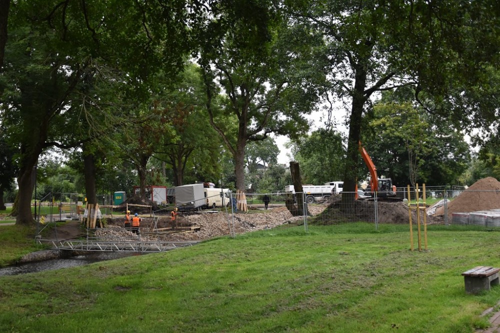 Docinanie władzom miasta rozpoczęło się po rozstrzygnięciu przetargu, kiedy okazało się że kładka będzie miała prawie 5 m szerokości i 15 m długości i pochłonie prawie 1 mln zł, a emocje wybuchły na widok mocnej ingerencji w teren i wycinki drzew pod inwestycję. Wycięto jesion, bo jego pozostawienie groziłoby naruszeniem korzeni oraz przycięto wierzbę.