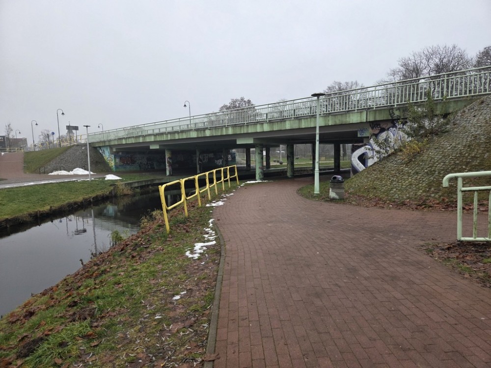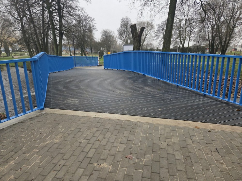 Była mowa o iluminacji kładki. Sprowadziło się do ustawienia dwóch lamp. Roboty drogowe polegały na wykonaniu ciągów pieszo-rowerowych na dojściach do kładki.