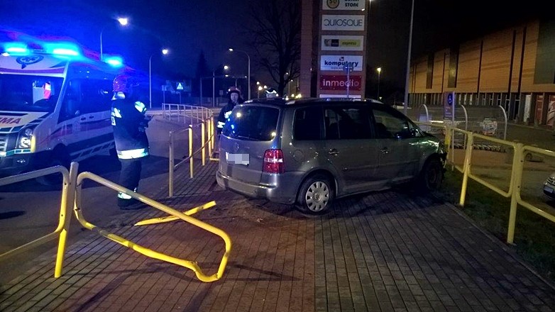 Kierująca Volkswagenem Touranem kobieta na rondzie u zbiegu ulic Kościuszki i Reja w Suwałkach straciła panowanie nad autem, staranowała barierki w pobliżu Tesco i zatrzymała się na chodniku. Na szczęście na chodniku nie było pieszych. Zdarzenia miało miejsce około 22.00. Kobieta opuściła samochód o własnych siłach. Została opatrzona przez strażaków i odwieziona karetką do miejscowego szpitala. Dokładne okoliczności zdarzenia wyjaśnia suwalska policja.