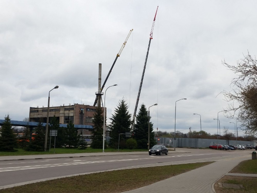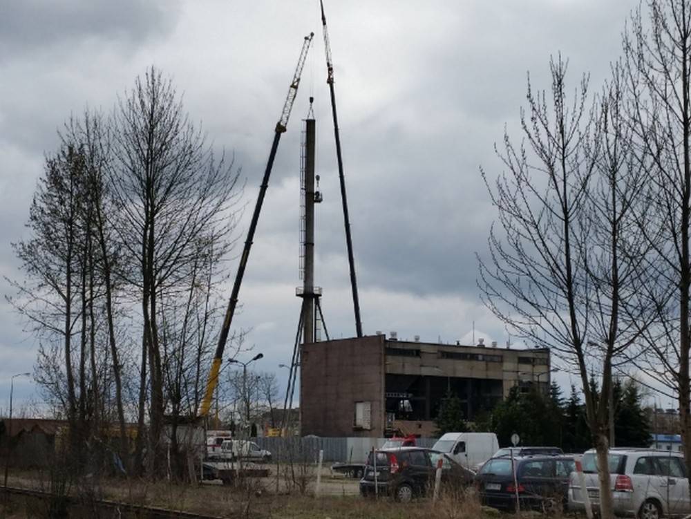 Rozbiórka starej kotÅ‚owni wystartowaÅ‚a w marcu. Najpierw rozebrano urzÄ…dzenia w budynku. Teraz przyszedÅ‚ czas na komin. W czwartek kawaÅ‚ek po kawaÅ‚ku rozbierano jego elementy i za pomocÄ… wysokiego dźwigu opuszczano na ziemiÄ™.