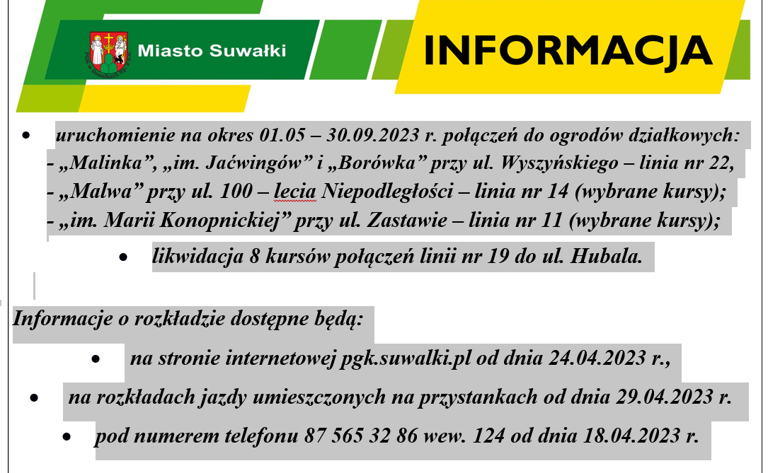 ŹródÅ‚o: ZKM SuwaÅ‚kiInformacje o rozkÅ‚adzie dostÄ™pne bÄ™dÄ…: