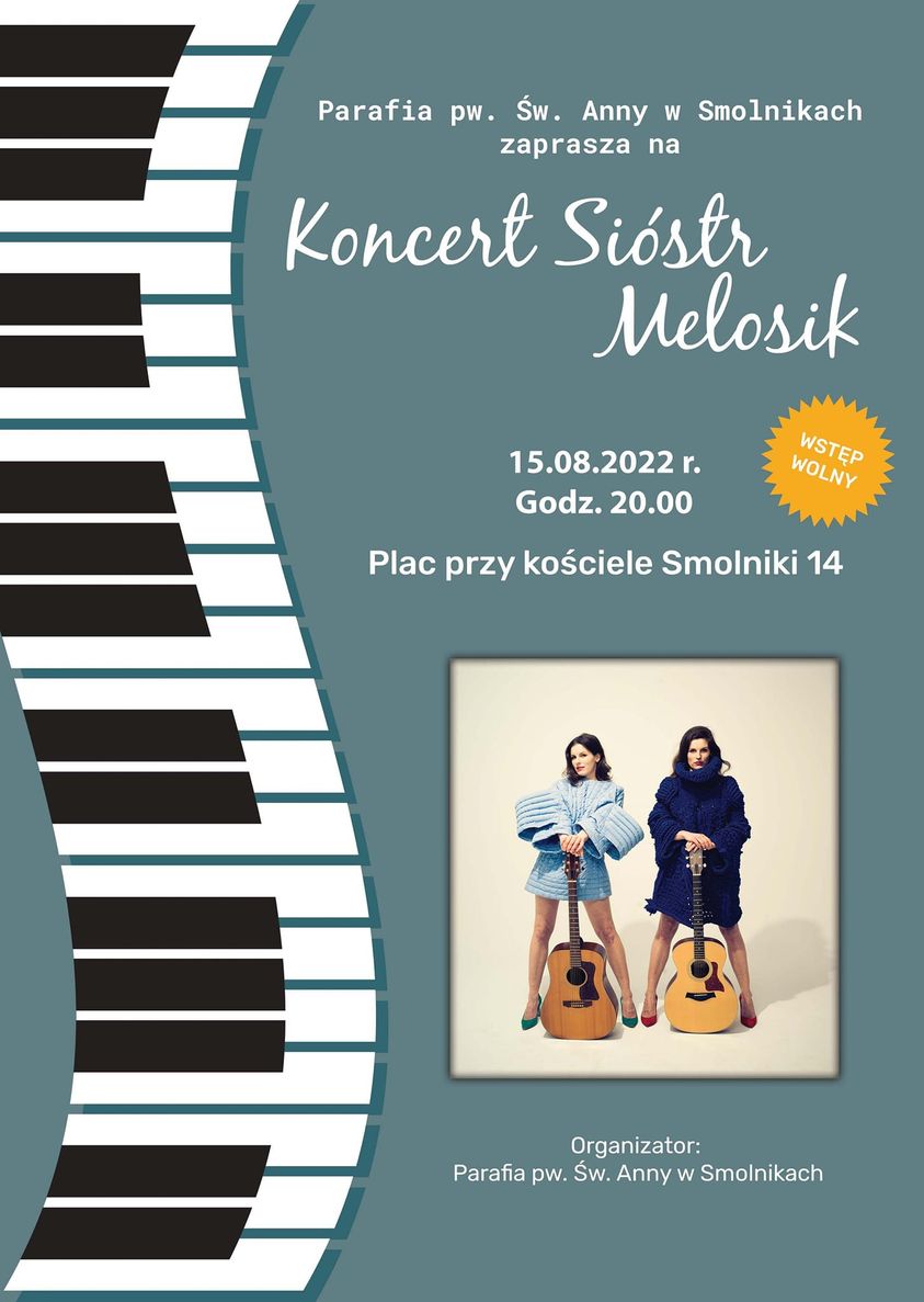Parafia pw. św. Anny w Smolnikach zaprasza na koncert sióst Melosik na podwórku parafialnym.