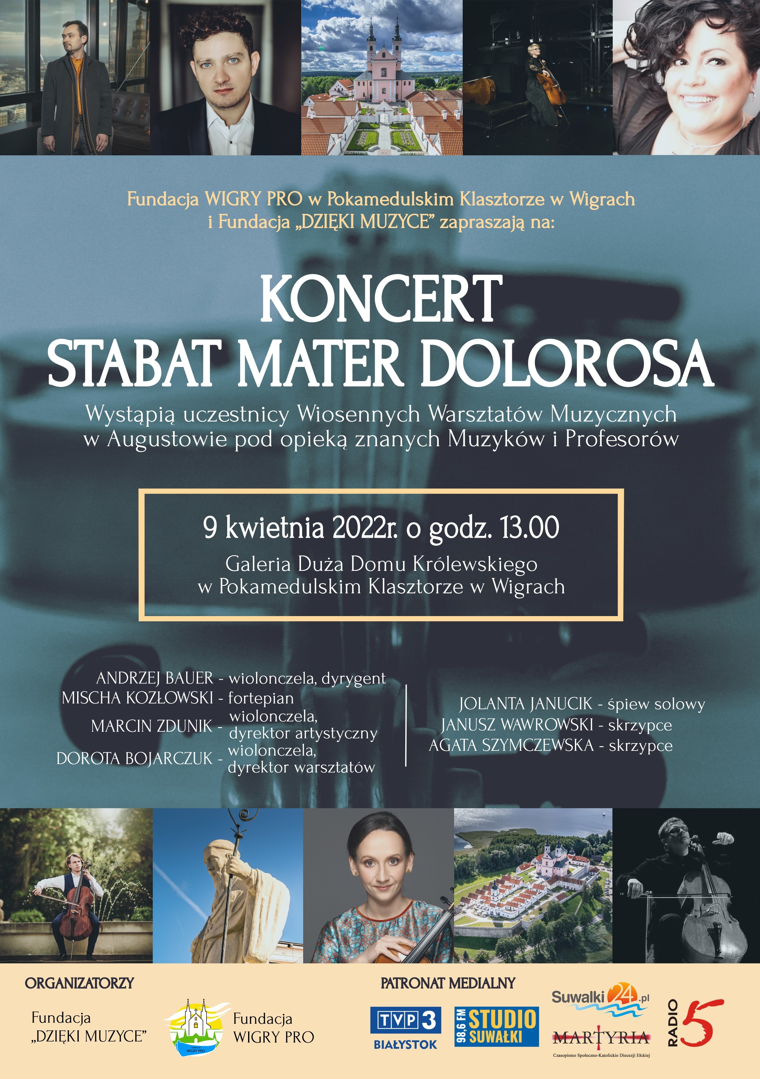 Fundacja Wigry Pro oraz Fundaca Dzięki Muzyce zapraszają na Koncert Stabat Mater Dolorosa" w Wigrach.
