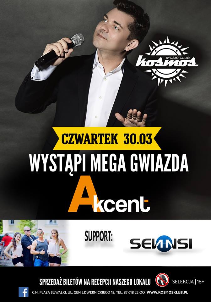Koncert rozpocznie siÄ™ o 21.00 i potrwa do 2.00 w nocy. Najpierw na scenie pojawi siÄ™ zespóÅ‚ Sennsi. Koncert Akcentu rozpocznie siÄ™ okoÅ‚o 23.00.