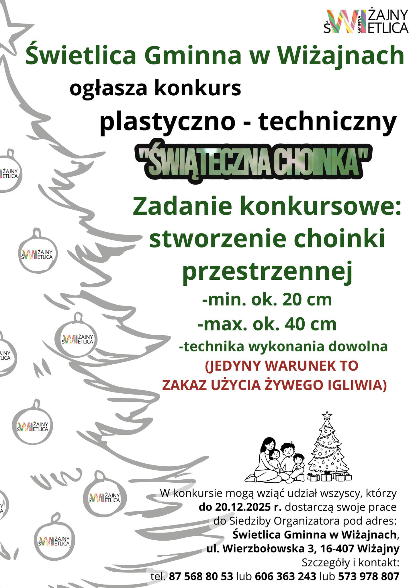 Świetlica Gminna w Wiżajnach organizuje konkurs plastyczno-techniczny na stworzenie choinki przestrzennej.
