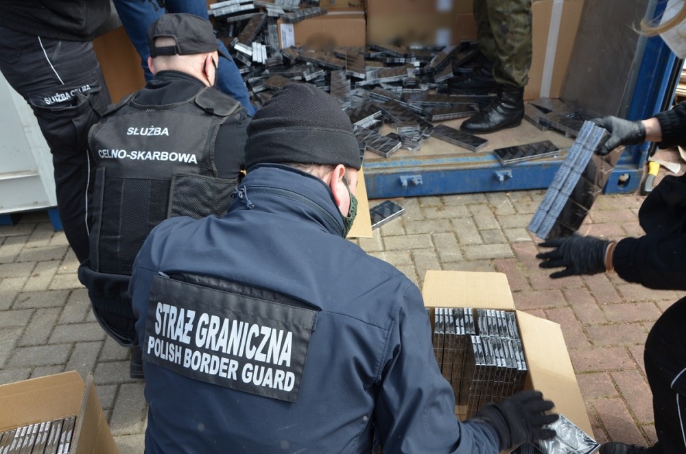 Blisko 2,5 mln paczek nielegalnych papierosów wartych prawie 37 mln zł ujawnili funkcjonariusze Straży Granicznej i Służby Celno-Skarbowej