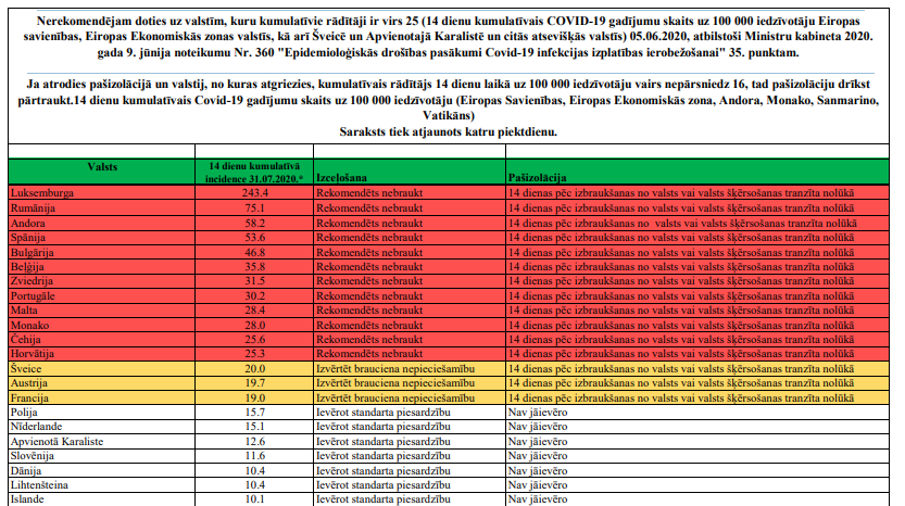 Na Łotwę i do Estonii bez wymogu poddania się kwarantannie mogą wjechać mieszkańcy państw, w których liczba zakażeń w ciągu ostatnich czternastu dni nie przekroczyła 16 na 100 tysięcy mieszkańców. Zbliżamy się do tej granicy. Tabela ukazalo się wczoraj, a następna zostanie opublikowana w najbliższy piątek, 7 sierpnia.