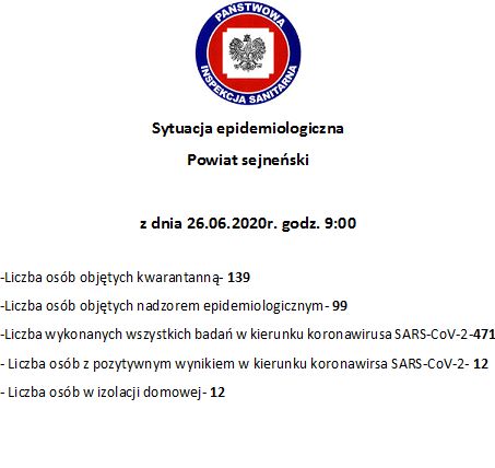 Od wesela w Gibach i późniejszej sesji tamtejszej Rady Gminy, po której chory okazał się w wójt, jego żona i dwie córki, notowane są też kolejne przypadki zakażeń w powiecie sejneńskim. Trzy nowe zarażone osoby to kobieta w sile wieku z gminy Giby, młody meżczyzna oraz pracownica Urzędu Miasta w Sejnach. Liczna zakażonych w wolnym do minionej soboty od koronawirusa powiecie sejneńskim wzrosła do 12.