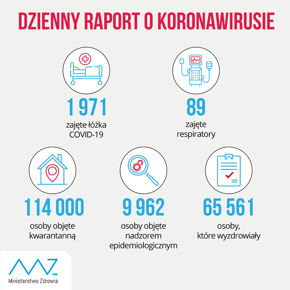 Liczba zakażonych koronawirusem w Polsce wynosi 81 673. Zmarly 2 344 osoby, wyzdrowiało 65 561.