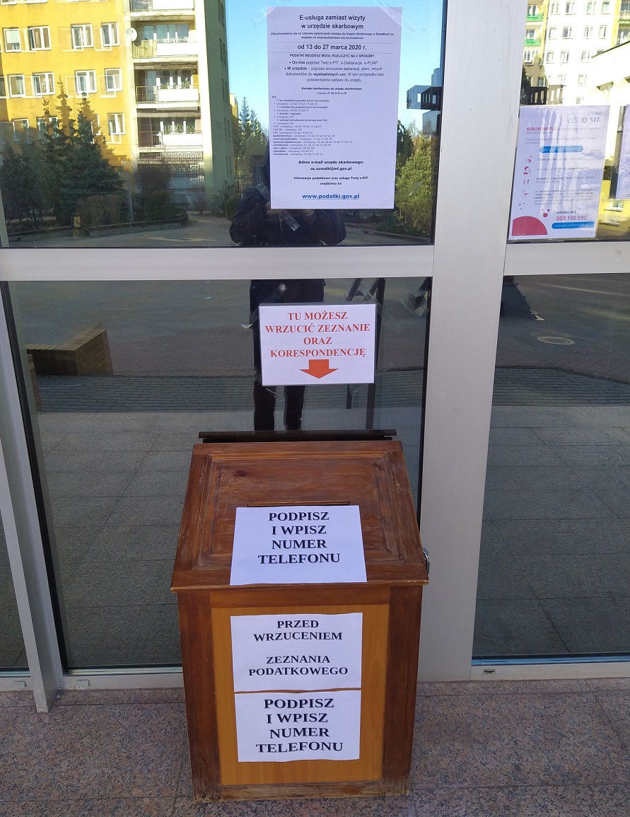 Naczelnik UrzÄ™du Skarbowego w SuwaÅ‚kach informuje, że w tym czasie podatnicy majÄ… możliwość zÅ‚ożenia zeznaÅ„ podatkowych, deklaracji i innych dokumentów w formie papierowej do urny znajdujÄ…cej siÄ™ przed wejÅ›ciem do urzÄ™du skarbowego od strony Zegara Milenijnego w Pasażu Grande Synthe.