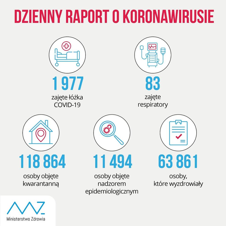 Resort zdrowia powiadomił o śmierci 12 osób zakażonych koronawirusem (wiek-płeć, miejsce zgonu): 77-M Racibórz, 70-M Lipno, 92-K Grudziądz, 81-K Poznań, 46-M Lublin, 73-K Radomsko, 64-M Warszawa (mieszkaniec woj. łódzkiego), 67-M, 67-K Warszawa, 66-M Kędzierzyn-Koźle, 69-M Gdańsk, 68-M Bytów. Większość osób miała choroby współistniejące.
