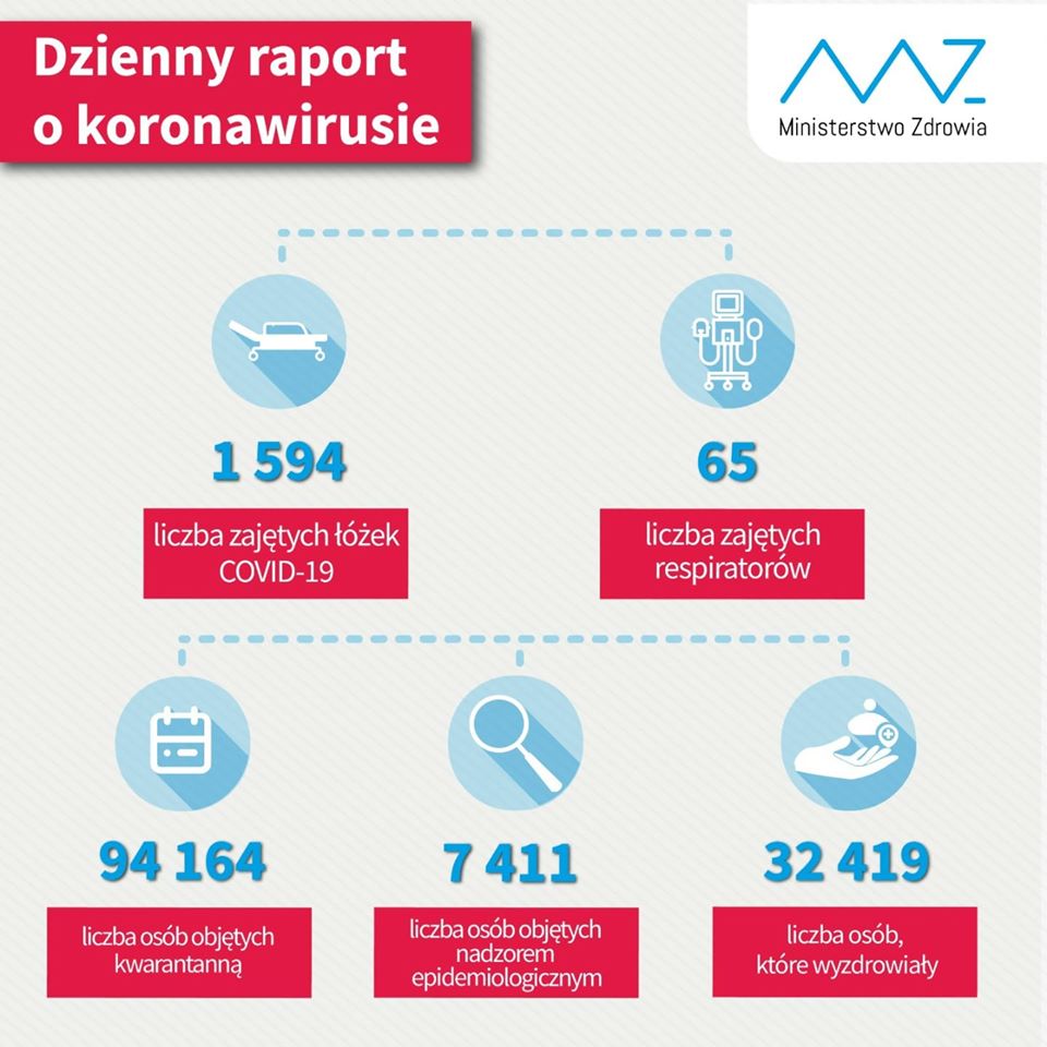 Liczba zakażonych koronawirusem w Polsce wynosi 42 622. Zmarły 1 664 osoby, wyzdrowiało 32 419.