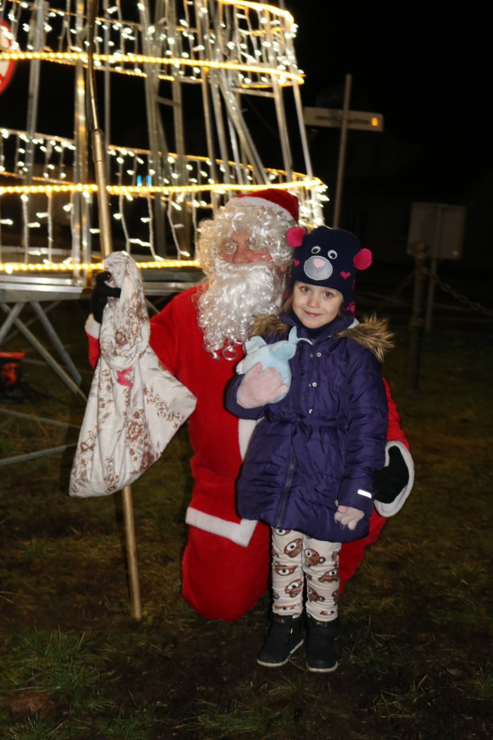 W pewnym momencie pojawił się Mikołaj, z charakterystycznym wielkim workiem wypchanym prezentami. Rozdawał maskotki i żartował, a dzieciom świeciły się oczy jak te lampki na choince.