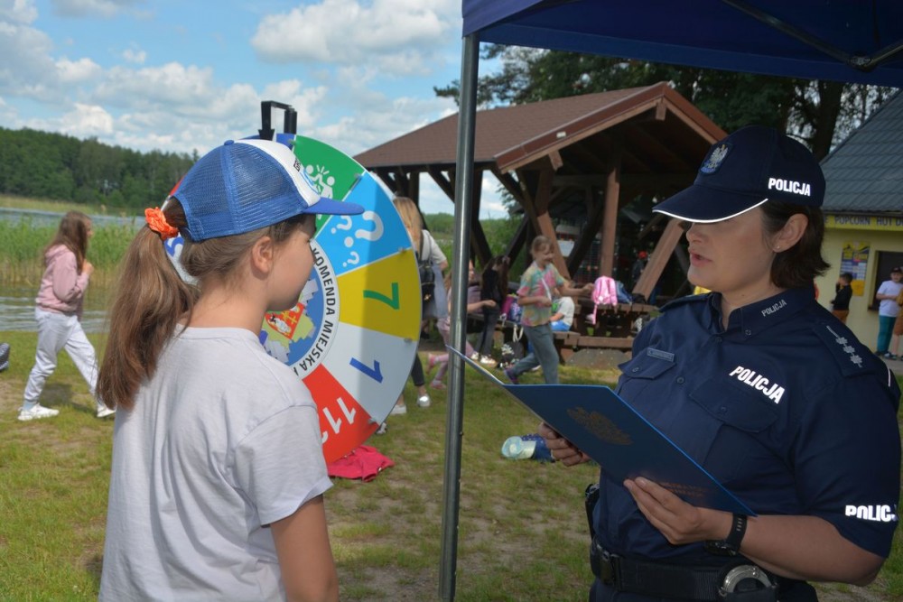 Podczas pikniku rozmawiano z dziećmi o zagrożeniach wystÄ™pujÄ…cych podczas wakacji. WyjaÅ›niono zasady bezpiecznej kÄ…pieli oraz uprawiania sportów wodnych. NajmÅ‚odsi utrwalili sobie tÄ™ wiedzÄ™, biorÄ…c udziaÅ‚ w przygotowanych konkursach edukacyjnych.