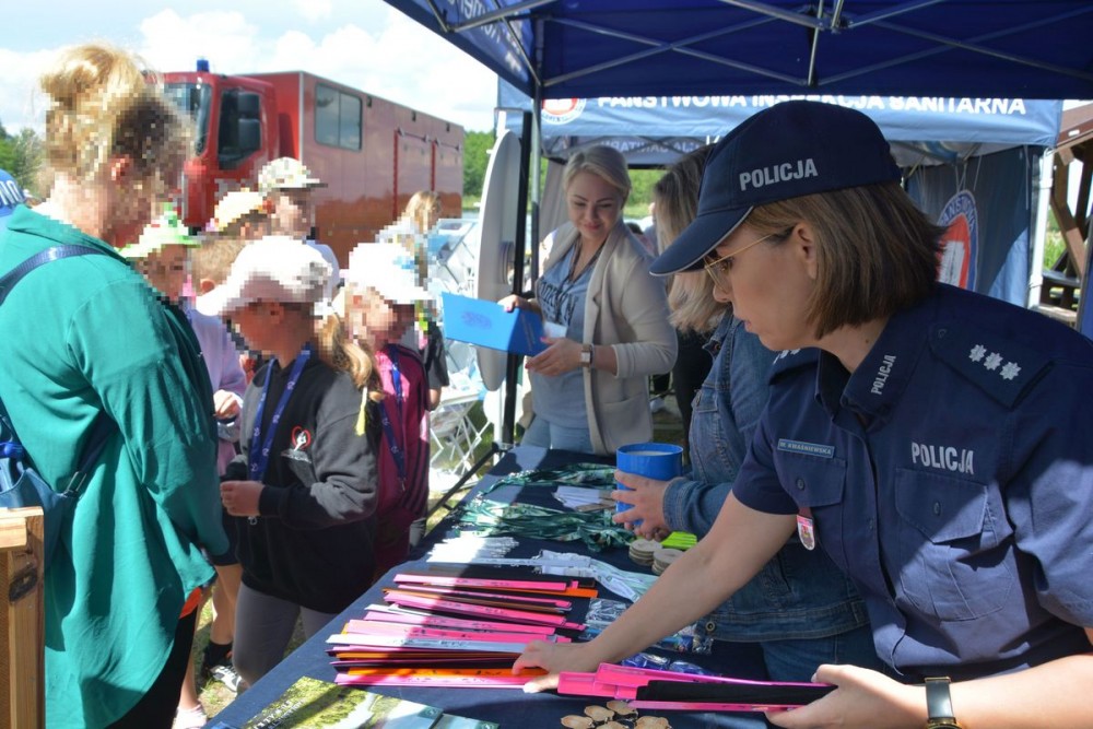 Suwalscy policjanci, wspólnie z przedstawicielami sÅ‚użb i instytucji wspóÅ‚pracujÄ…cych na rzecz bezpieczeÅ„stwa przygotowali piknik edukacyjno-informacyjny na plaży w Krzywym.