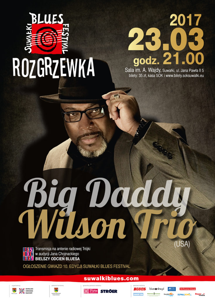 Suwalski Ośrodek Kultury zaprasza na koncert, który będzie Rozgrzewką przed Suwałki Blues Festival 2017. Wystąpi amerykański zespół BIG DADDY WILSON TRIO. Koncert będzie bezpośrednio transmitowany przez Program 3 Polskiego Radia w audycji „Bielszy Odcień Bluesa”. Są jeszcze bilety.