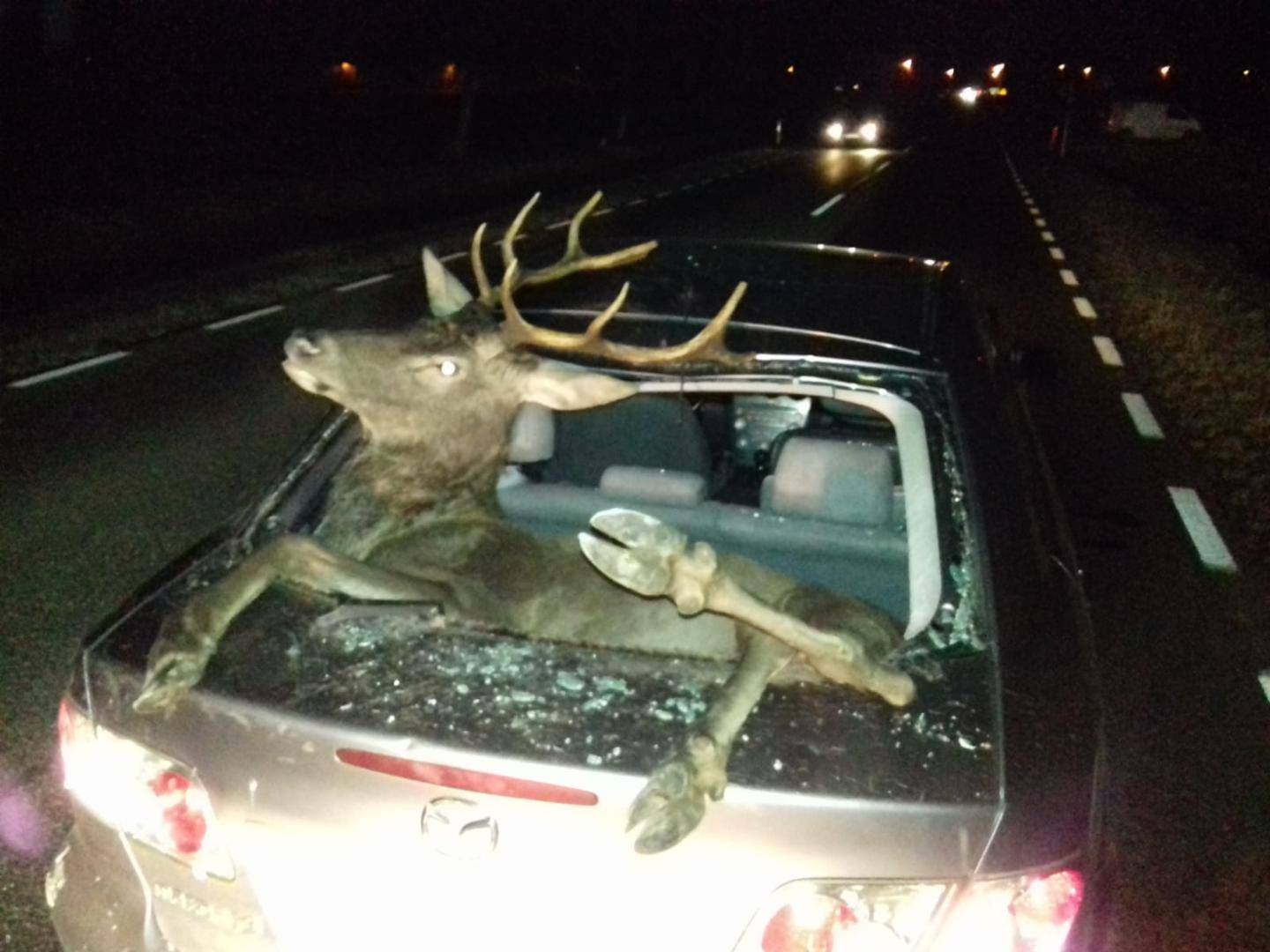- JadÄ…cej ze strony Ostrołęki kobiecie kierujÄ…cej mazdÄ… tuż przed pojazd wyskoczyÅ‚ jeleÅ„. ZwierzÄ™ zahaczyÅ‚o rogiem o przedniÄ… szybÄ™ po czym odbiÅ‚o siÄ™ i wpadÅ‚o do auta przed tylnÄ… szybÄ™. PodróżujÄ…cej samochodem kobiecie i jej dwójce dzieci nic siÄ™ nie staÅ‚o – informuje nadkom. Tomasz Krupa, oficer prasowy komendy Wojewódzkiej Policji w BiaÅ‚ymstoku.