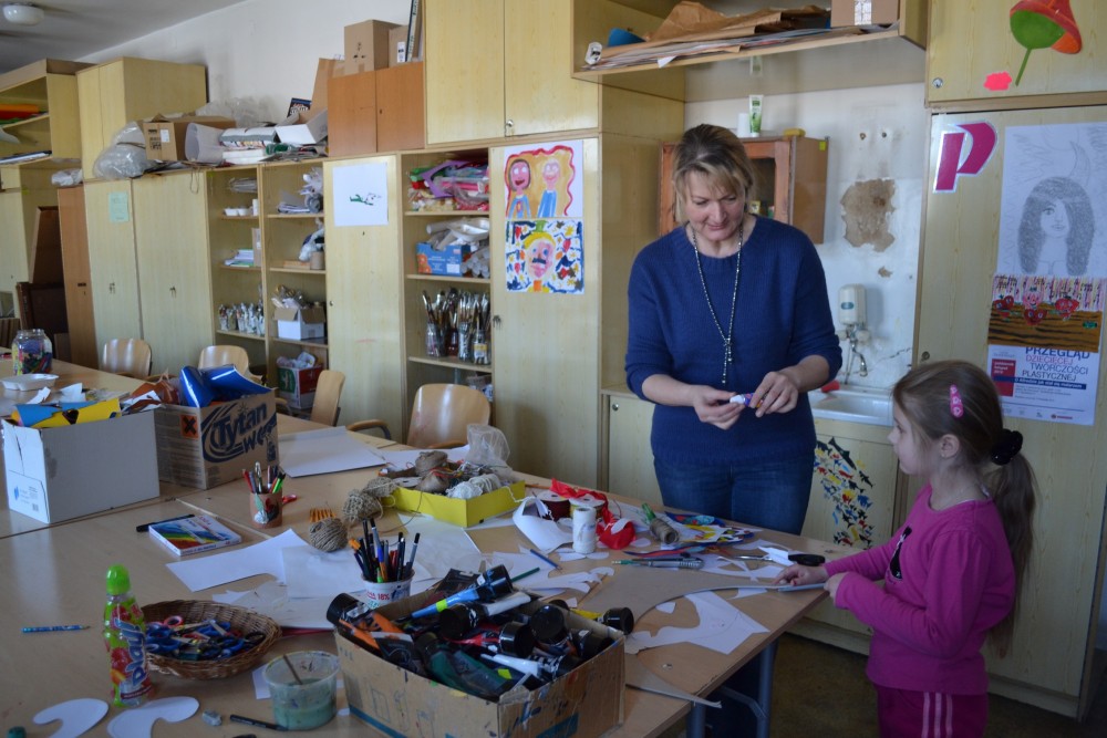 - RobiliÅ›my też biżuteriÄ™ dla mam z masy papierowej, dzieci malowaÅ‚y smoki, może bÄ™dziemy robić jakieÅ› czapy. Staram siÄ™, aby nie byÅ‚y to tylko zajÄ™cia malarskie, ale też manualne, żeby dzieci mogÅ‚y coÅ› uformować, wyrzeźbić. ZajÄ™cia plastyczne sÄ… bardzo kreatywne, pobudzajÄ… wyobraźniÄ™ - mówi Halina Mackiewicz. - Bywa, że biorÄ… w nich udziaÅ‚ caÅ‚e rodziny. Przez kilka dni przychodziÅ‚o do mojej pracowni czterech braci. Dobrze, że pracownia zostaÅ‚a tutaj, na Noniewicza. Dzieci mieszkajÄ…ce w centrum majÄ… bardzo blisko – mówi Mackiewicz.