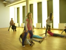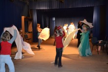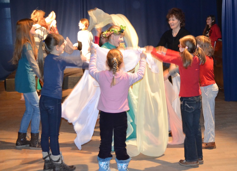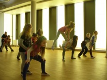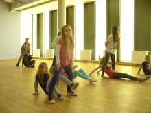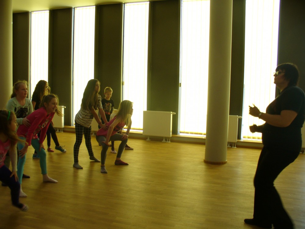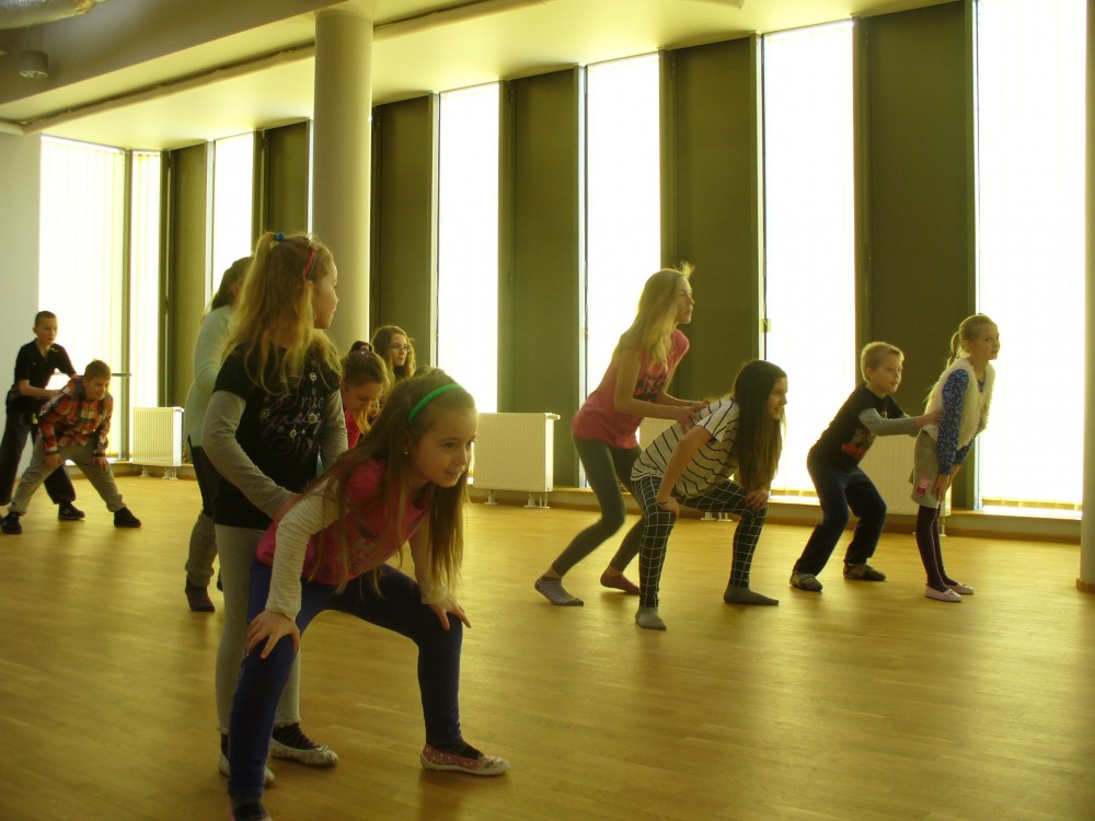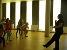 Kasia MoÅ›, 9 lat, przyszÅ‚a po raz pierwszy. Szybko „zÅ‚apaÅ‚a” rytm wspólnej zabawy. TaÅ„czyÅ‚a „belgijkÄ™” i wcieliÅ‚a siÄ™ w rolÄ™ Calineczki.