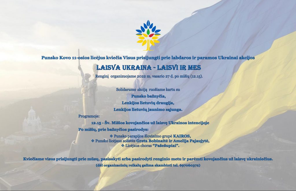 Uczniowie z LO zaangażowali się w organizacji pomocy dla ludności Ukrainy. Wspólnie z parafią, Stowarzyszeniem Litwinów w Polsce, Związkiem Litewskiej Młodzieży w Polsce, organizuje w tę niedzielę, 27 lutego akcję charytatywną.