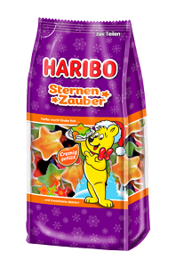 Oczekiwanie na Pierwszą Gwiazdkę będzie jeszcze przyjemniejsze, jeśli pod ręką znajdą się Magiczne Gwiazdki HARIBO! To wyjątkowe, miękkie żelki z nadzieniem o trzech owocowych smakach. Eleganckie świąteczne opakowanie sprawia, że doskonale sprawdzą się jako smakowity prezent dla dużych i małych wielbicieli żelek.