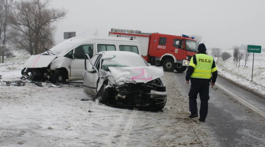 W nocy sypnęło Å›niegiem i już przed 7.00 na krajowej ósemce w Lipniaku osobowy seat wpadÅ‚ w poÅ›lizg i zderzyÅ‚ siÄ™ z busem (na zdjÄ™ciu). Efekt - troje rannych, obaj kierowcy oraz pasażerka osobówki, zablokowana przez kilka godzin droga na LitwÄ™.