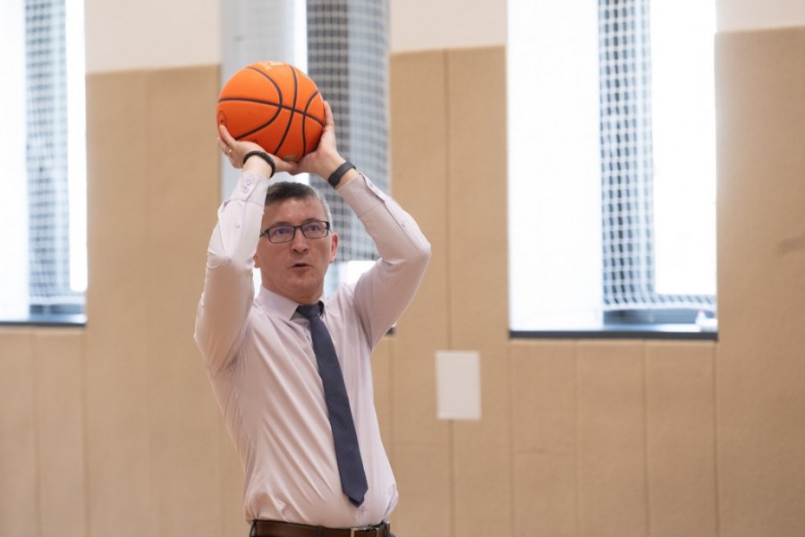 UczestniczÄ…cy w uroczystym otwarciu Daniel SÅ‚upek, I sekretarz Ambasady RP w Wilnie, życzyÅ‚ uczniom odkrywania nowych talentów sportowych i sam również spróbowaÅ‚ swoich siÅ‚ w rzucie do kosza z dystansu.