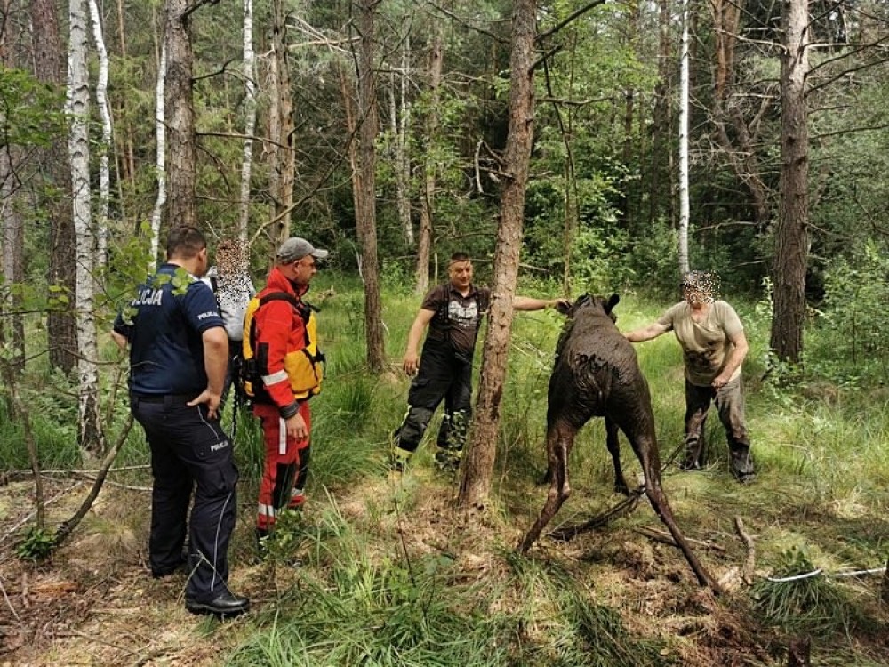 - Policjanci z Posterunku Policji w Filipowie, wspólnie z druhami OSP w Filipowie, ruszyli na pomoc. Na miejscu mundurowi ujawnili zwierzę zanurzone po głowę w błocie, które przytrzymywał jeden z okolicznych mieszkańców. Z uwagi na podmokły teren i brak możliwości użycia sprzętu specjalistycznego ratownicy pomogli wydostać się zwierzęciu siłą własnych rąk. Zdezorientowane zwierzę, po chwili spędzonej przy ratujących go osobach, pobiegło do lasu - informuje Komenda Miejska Policji w suwałkach.
