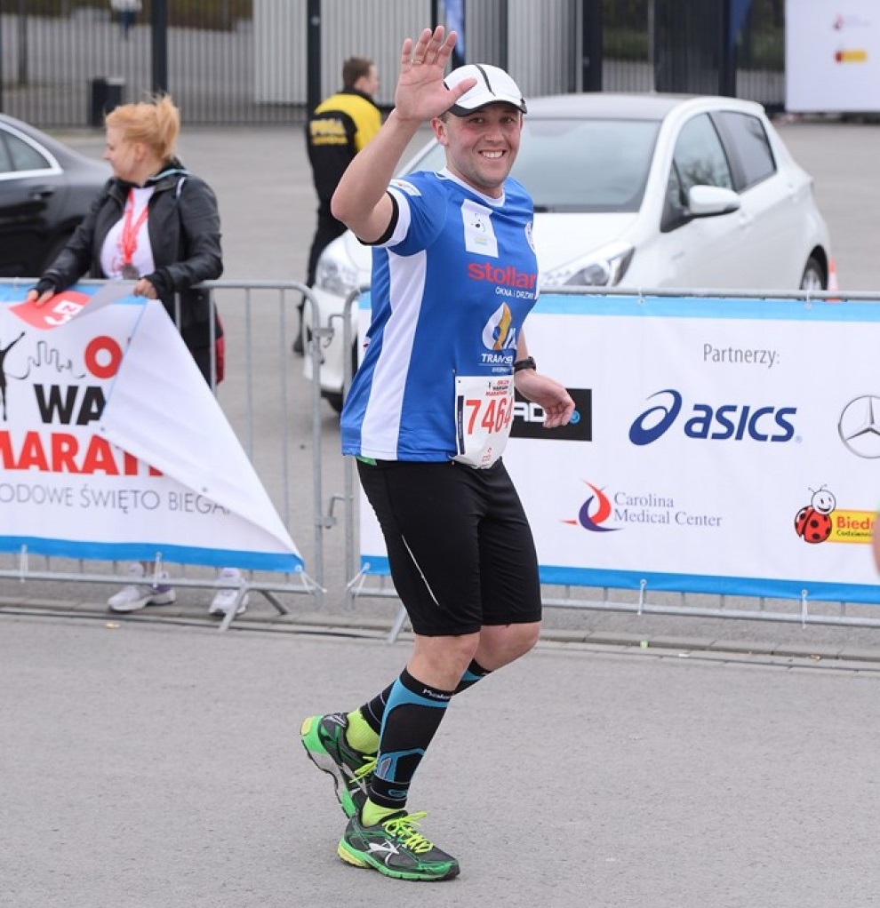 Łukasz, 33-letni szkoleniowiec najmłodszych adeptów futbolu i zapalony kibic suwalskiego klubu, pokusił się o nie lada wyczyn, ale jeżeli nie dojdzie do jakiegoś kataklizmu, na pewno dopnie swego. W jego wytrzymałość nie wolno wątpić, w końcu to były maratończyk (na zdjęciu na trasie Orlen Warsaw Marathon).