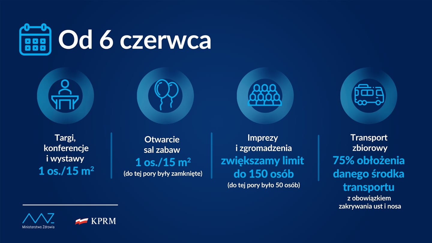 Z 50 do 150 podniesiony zostanie limit uczestników imprez, przyjęć i zgromadzeń.