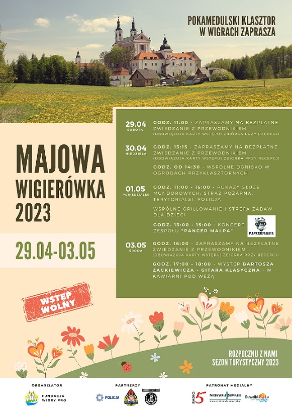 Fundacja Wigry Pro Pokamedulski Klasztor w Wigrach serdecznie zaprasza na Majową Wigierówkę, która odbędzie się od 29 kwietnia do 3 maja.