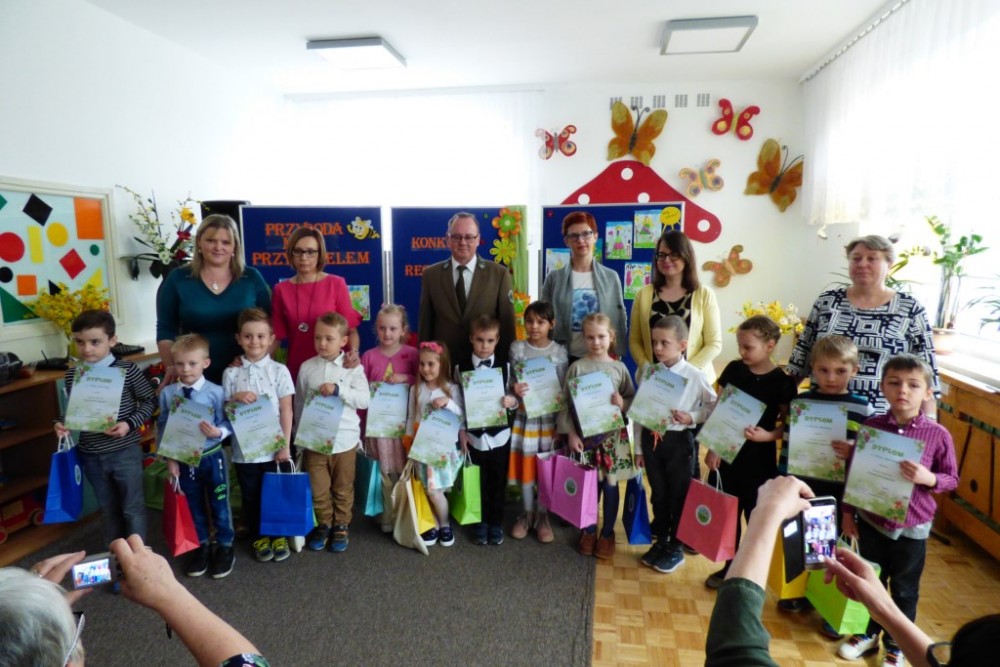 Cale przedsięwzięcie uświetnili goście - Justyna Kowalczuk, Inspektor Urzędu Miejskiego Wydziału Ochrony Środowiska i Gospodarki Komunalnej w Suwałkach oraz Wojciech Kamiński - przedstawiciel Wigierskiego Parku Narodowego. Dzięki współpracy z tymi instytucjami Przedszkole pozyskało środki finansowe na organizację konkursu oraz zakup nagród dla uczestników.