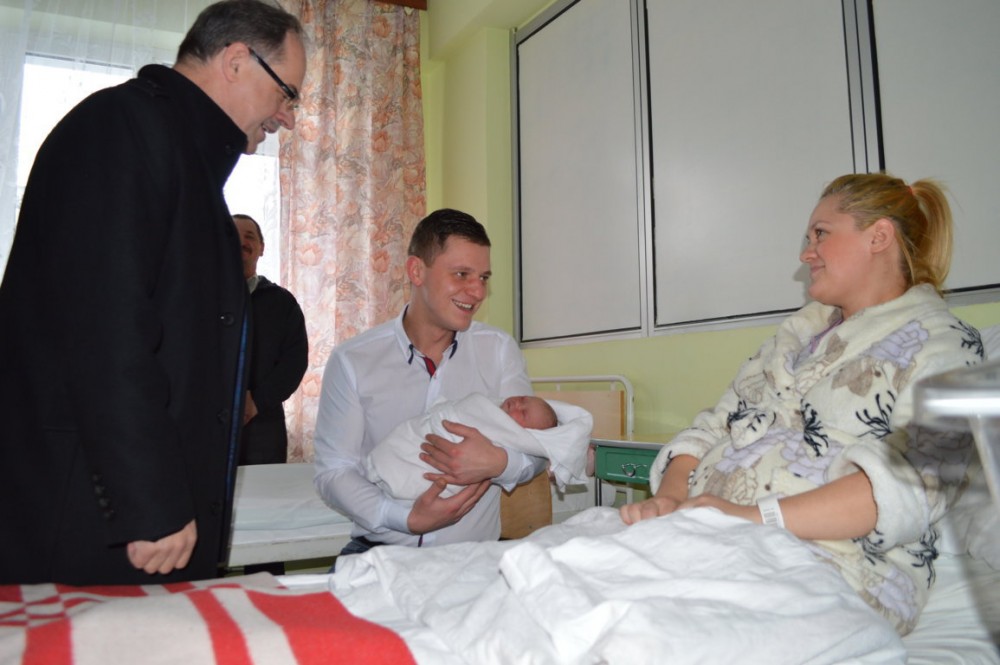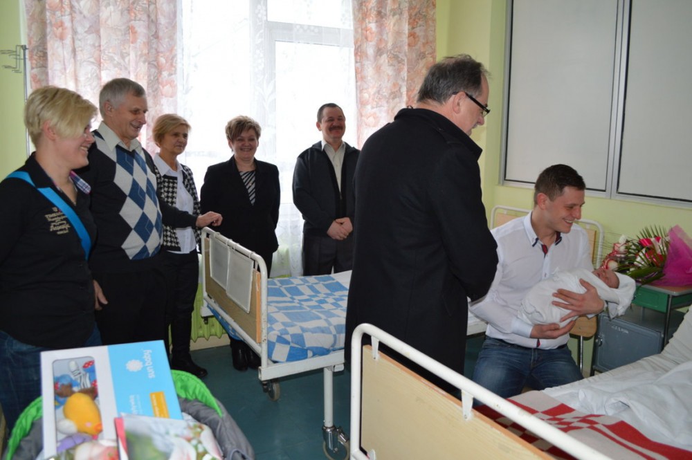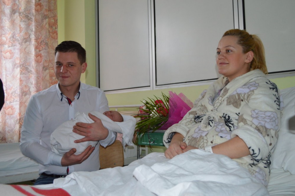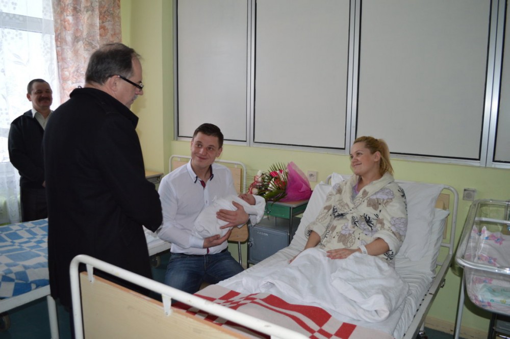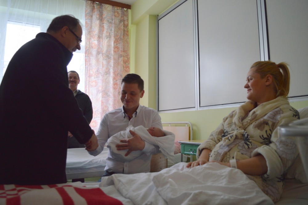 Prezydent Suwałk Czesław Renkiewicz przywitał w poniedziałek, 4 stycznia pierwszą suwalczankę urodzoną w 2016 roku. To malutka Hania, pierwsze dziecko pani Justyny Bogdan i pana Krzysztofa Adamowicza.