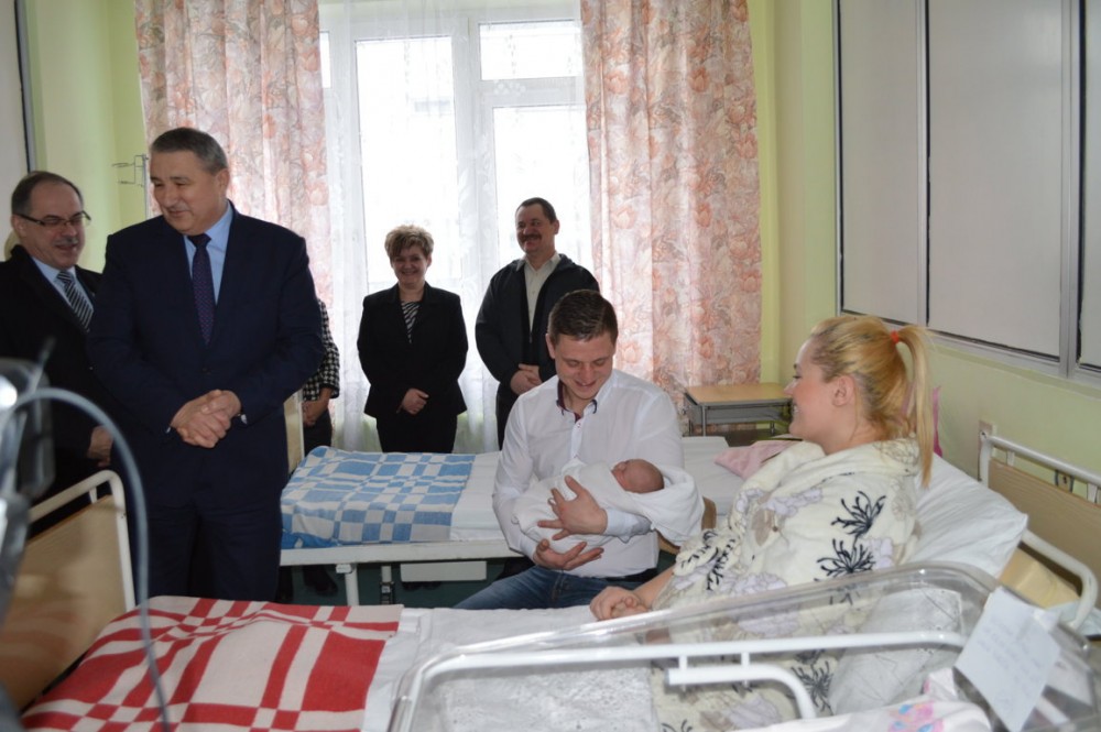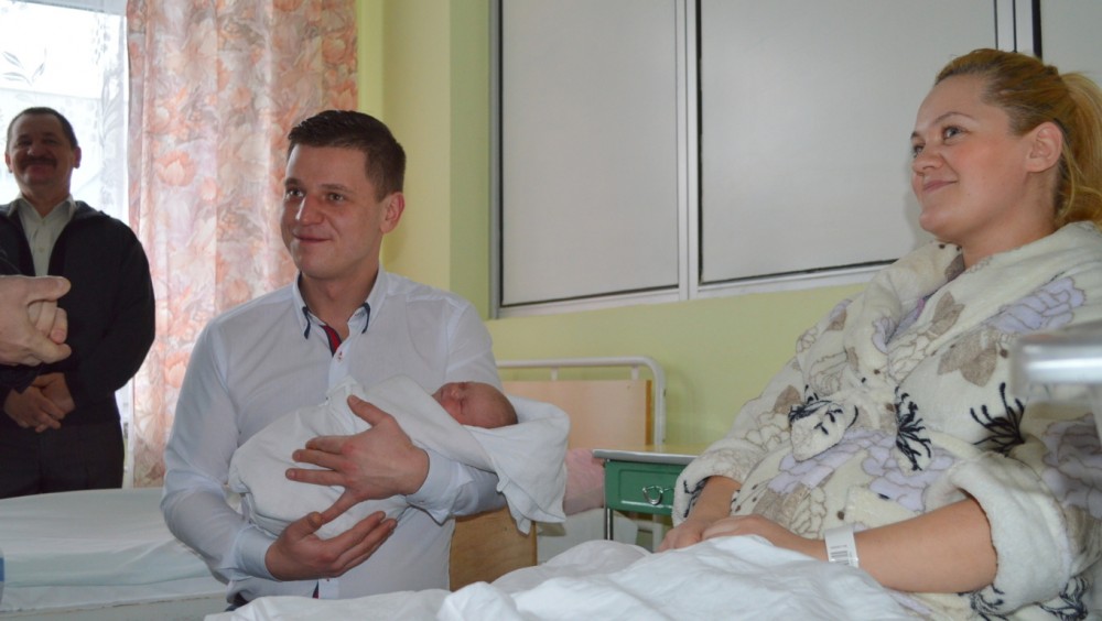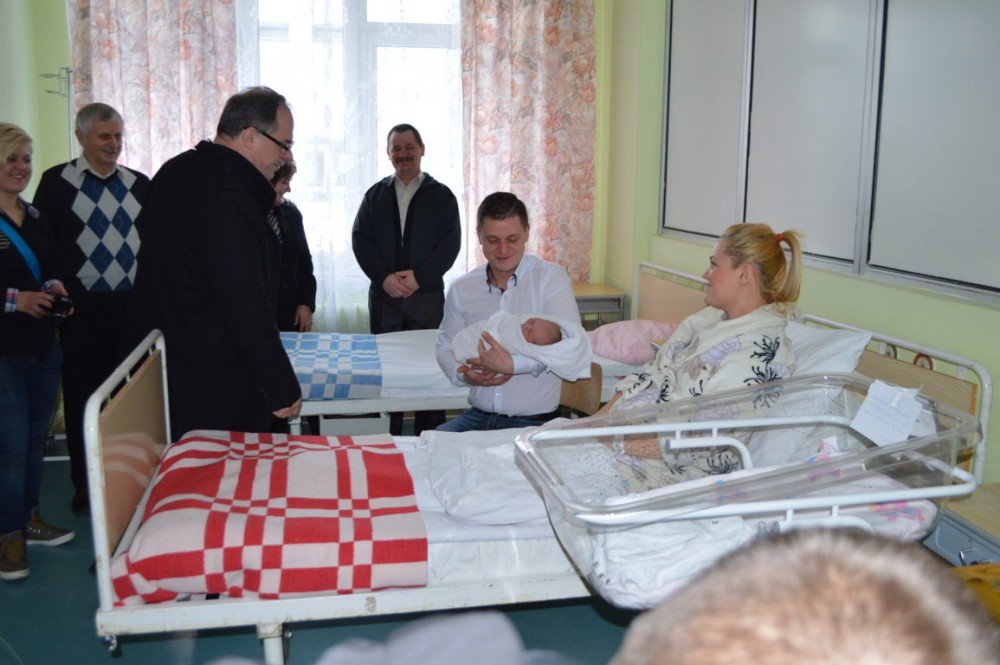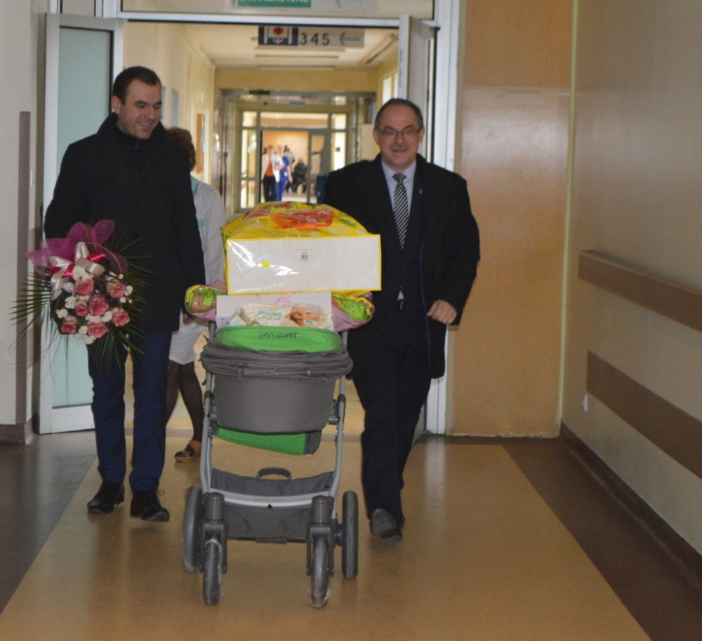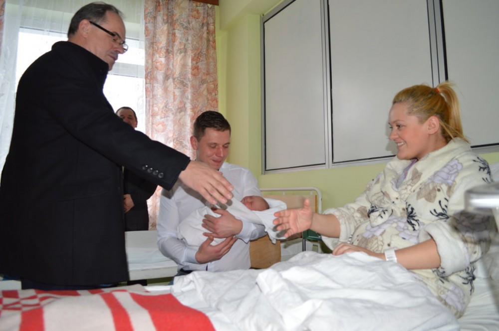Prezydent Suwałk Czesław Renkiewicz przywitał w poniedziałek, 4 stycznia pierwszą suwalczankę urodzoną w 2016 roku. To malutka Hania, pierwsze dziecko pani Justyny Bogdan i pana Krzysztofa Adamowicza.