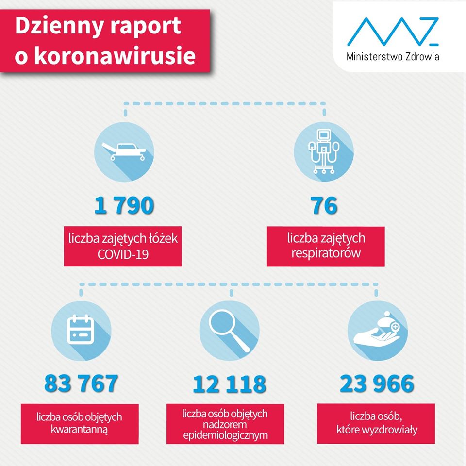 Liczba zakażonych koronawirusem w Polsce wynosi 36 155. Zmarlo 1 521 osób, wyzdrowiało 23 966.