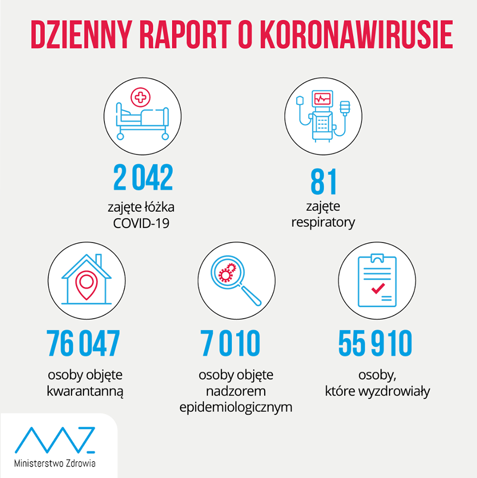 Liczba zakażonych koronawirusem w Polsce wynosi 71 526. Zmarło 2 136 osób, wyzdrowiało 55 910.