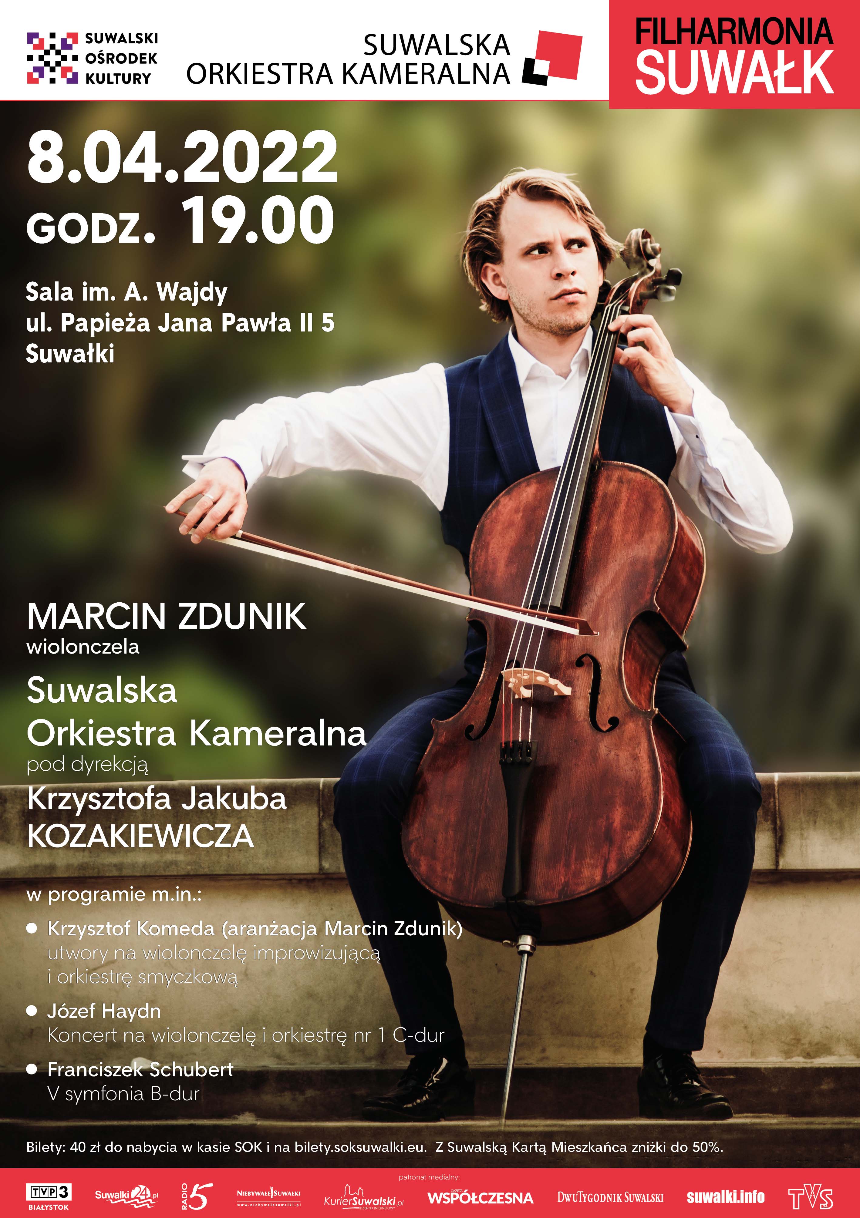 SolistÄ… kwietniowej Filharmonii SuwaÅ‚k bÄ™dzie ceniony w kraju i na Å›wiecie polski wiolonczelista, Marcin Zdunik. W ocenie znawców wyróżnia go oszaÅ‚amiajÄ…ca technika, wirtuozowski wdziÄ™k i podziwu godna różnorodność zainteresowaÅ„. Suwalska Orkiestra Kameralna zagra pod dyrekcjÄ… maestro Krzysztofa Jakuba Kozakiewicza.