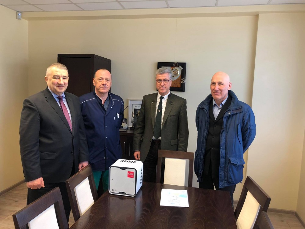 Polski Związek Łowiecki - Zarząd Okręgowy w Suwałkach przekazał w środę na ręce Adama Szałandy, dyrektora Szpitala Wojewódzkiego im.dr. Ludwika Rydygiera urządzenie do dekontaminacji powietrza – eliminujące wirusy, bakterie, pleśnie itp., chroniące chorego oraz personel medyczny przed zakażeniem. Gwarantuje ono nieprzerwane i skuteczne niszczenie drobnoustrojów i zanieczyszczeń, co zapewnia kompleksową aseptyczność powietrza, sprzętów i przedmiotów.