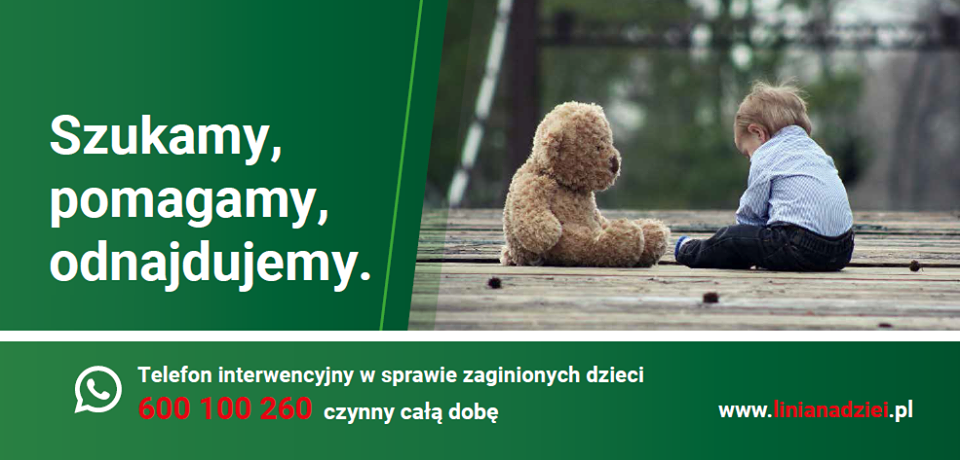 600 100 260 Telefon interwencyjny w sprawie zaginionych dzieci (czynny całą dobę)