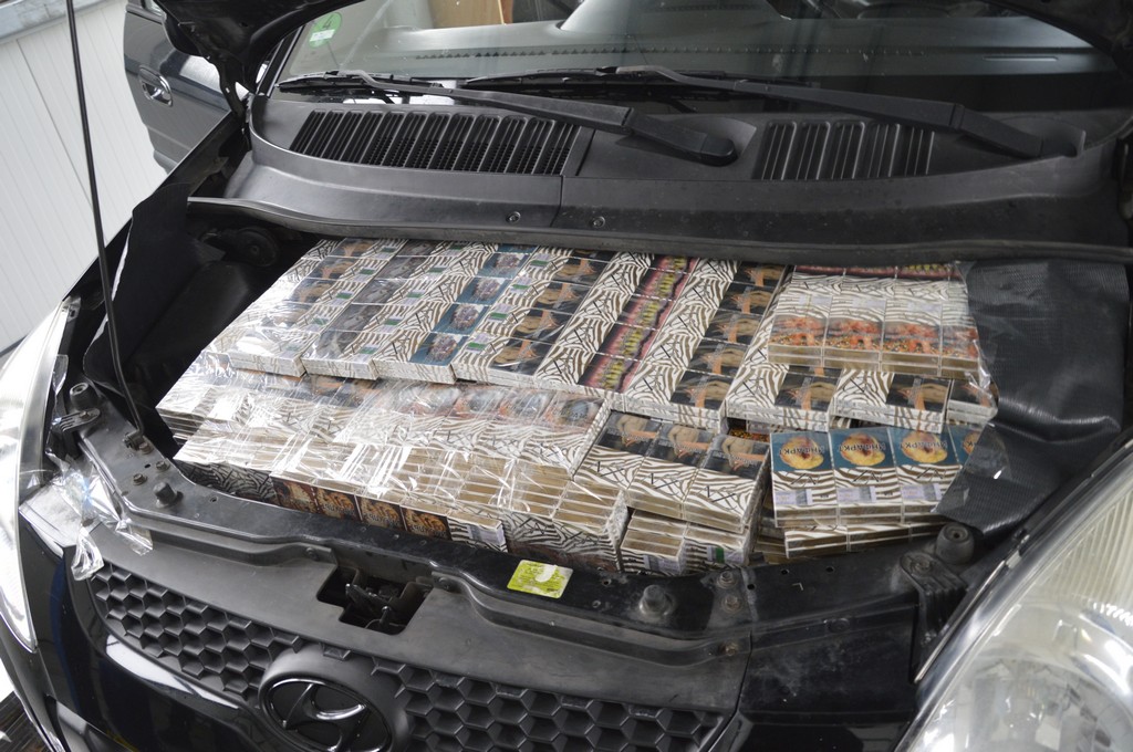 Podczas rewizji okazaÅ‚o siÄ™, że przerobiona podÅ‚oga, kokpit, komora silnika i drzwi hyundaia naszpikowane sÄ… tytoniowÄ… kontrabandÄ…. Miejsca te skrywaÅ‚y 5 tysiÄ™cy paczek biaÅ‚oruskich papierosów. Gdyby ujawniony towar trafiÅ‚ do nielegalnego obrotu, Skarb PaÅ„stwa straciÅ‚by blisko 110 tysiÄ™cy zÅ‚otych.