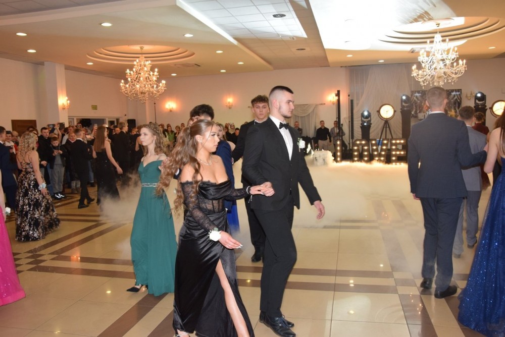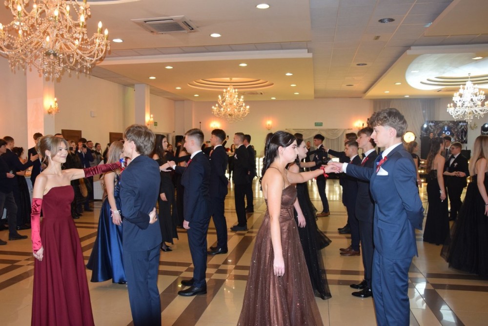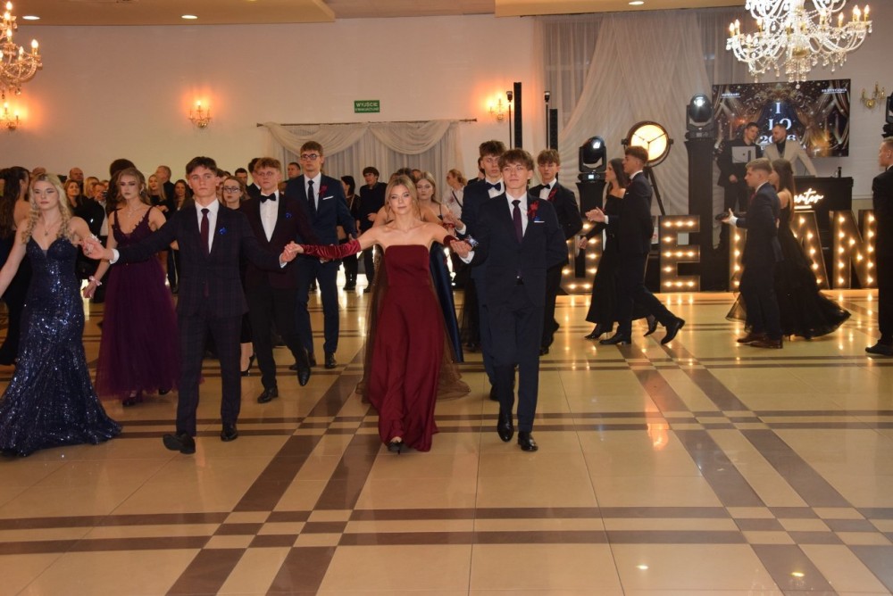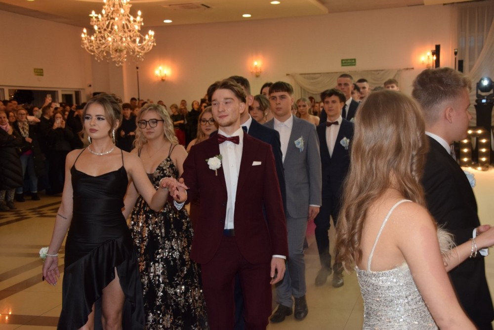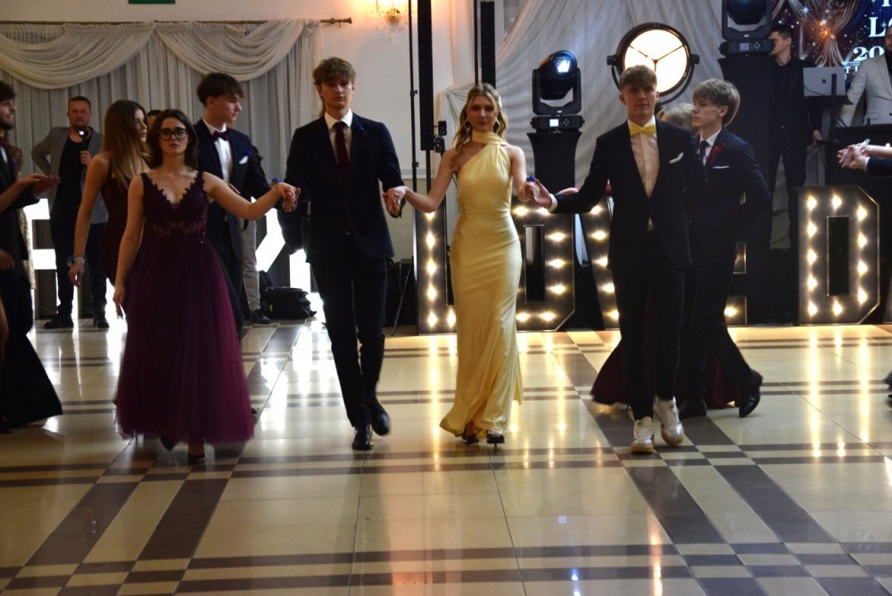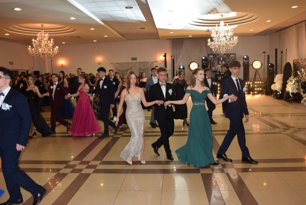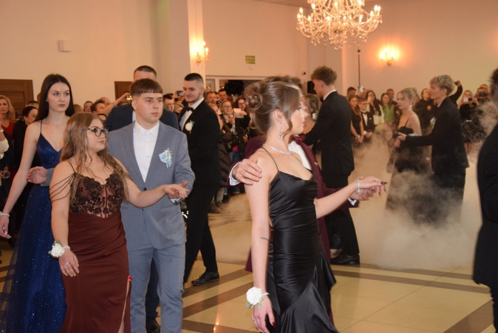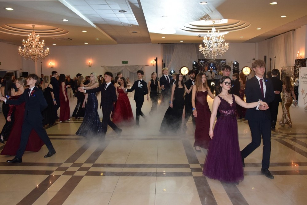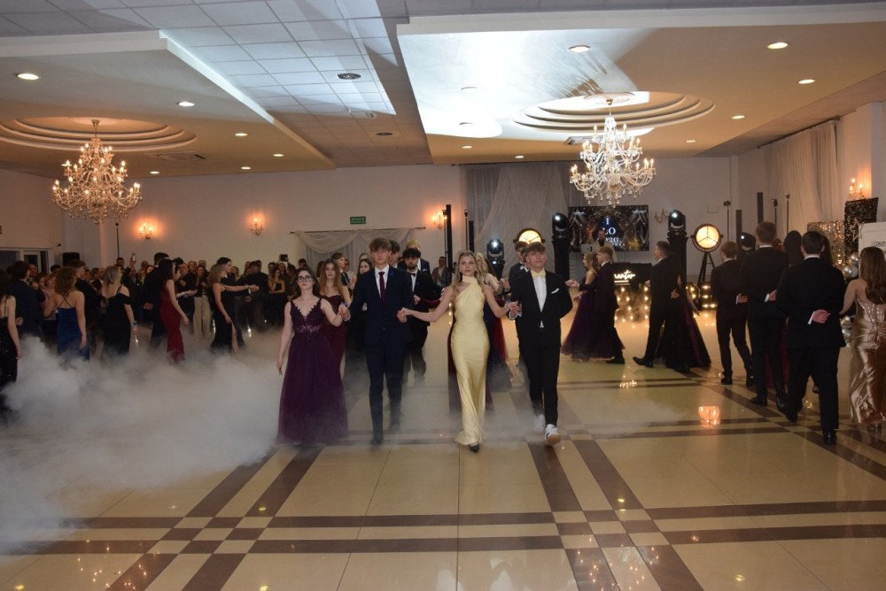 Tradycyjnie bal studniówkowy rozpoczął się od zatańczenia poloneza, do którego młodzież przygotowywała się przez kilka miesięcy.