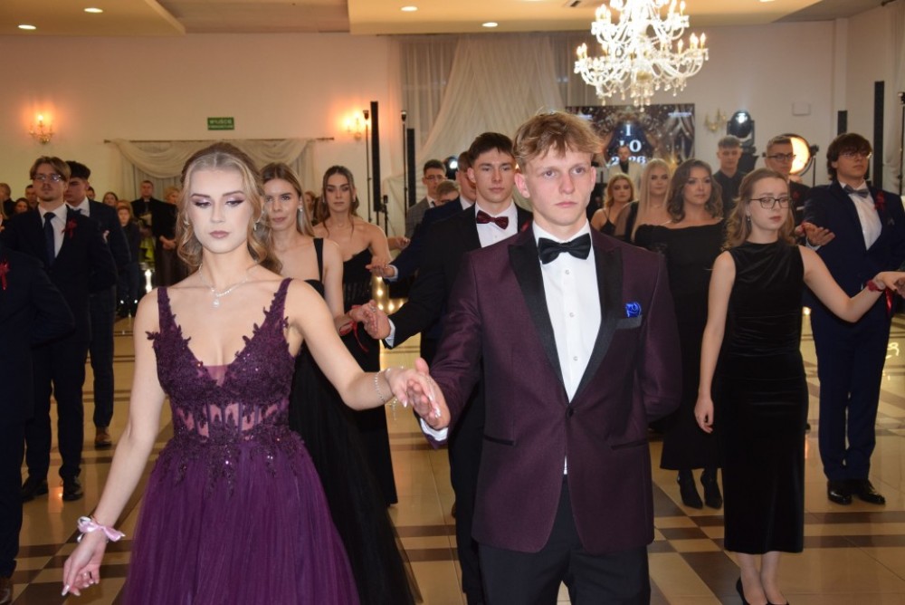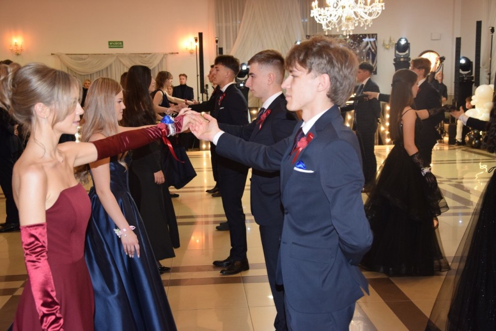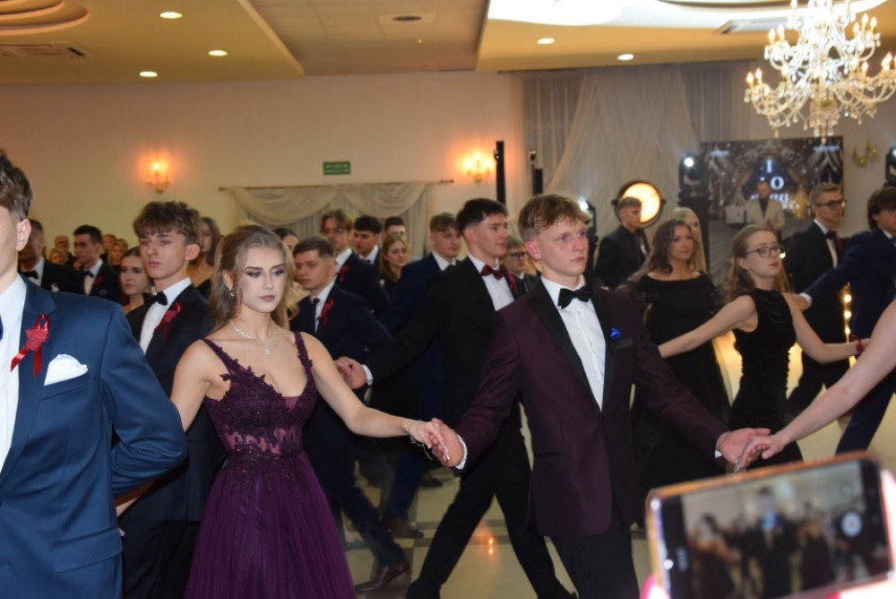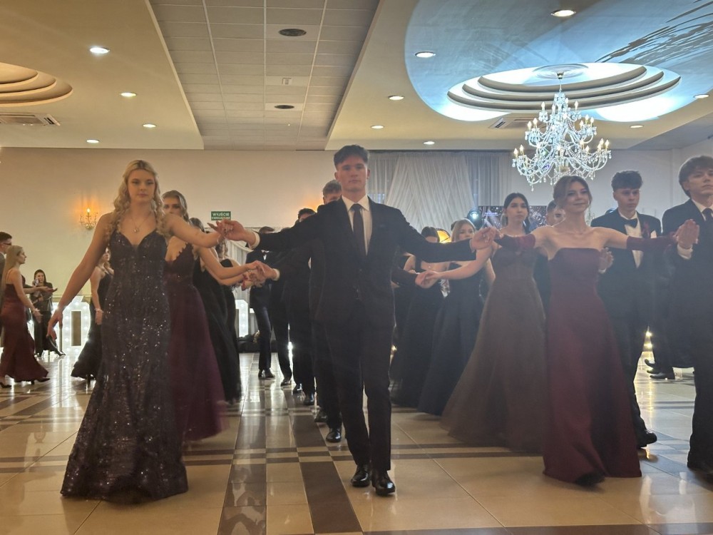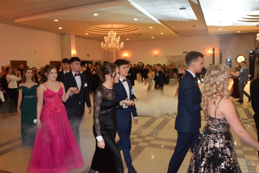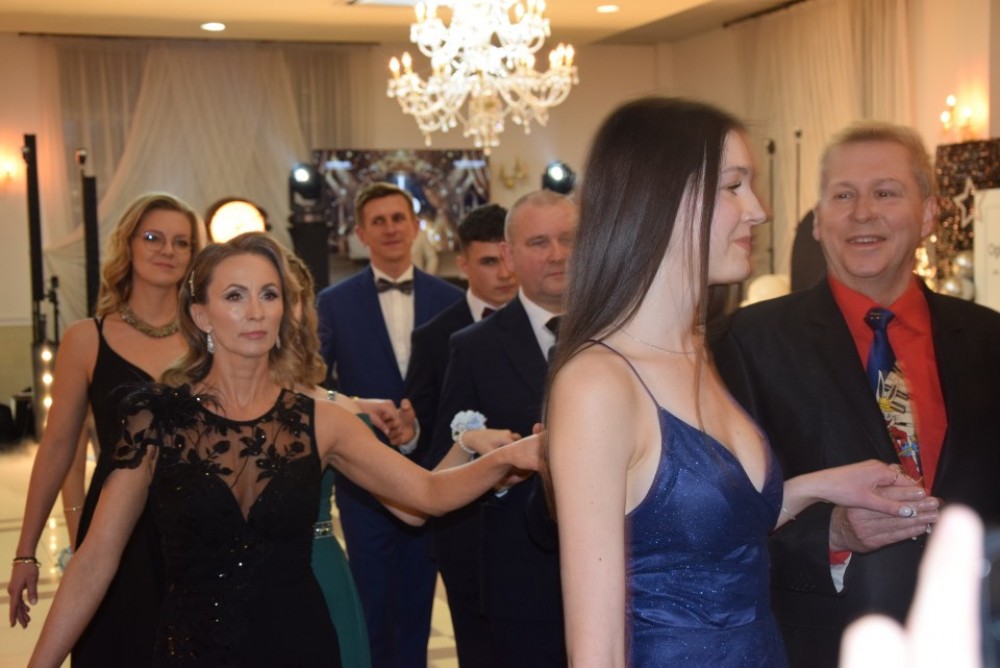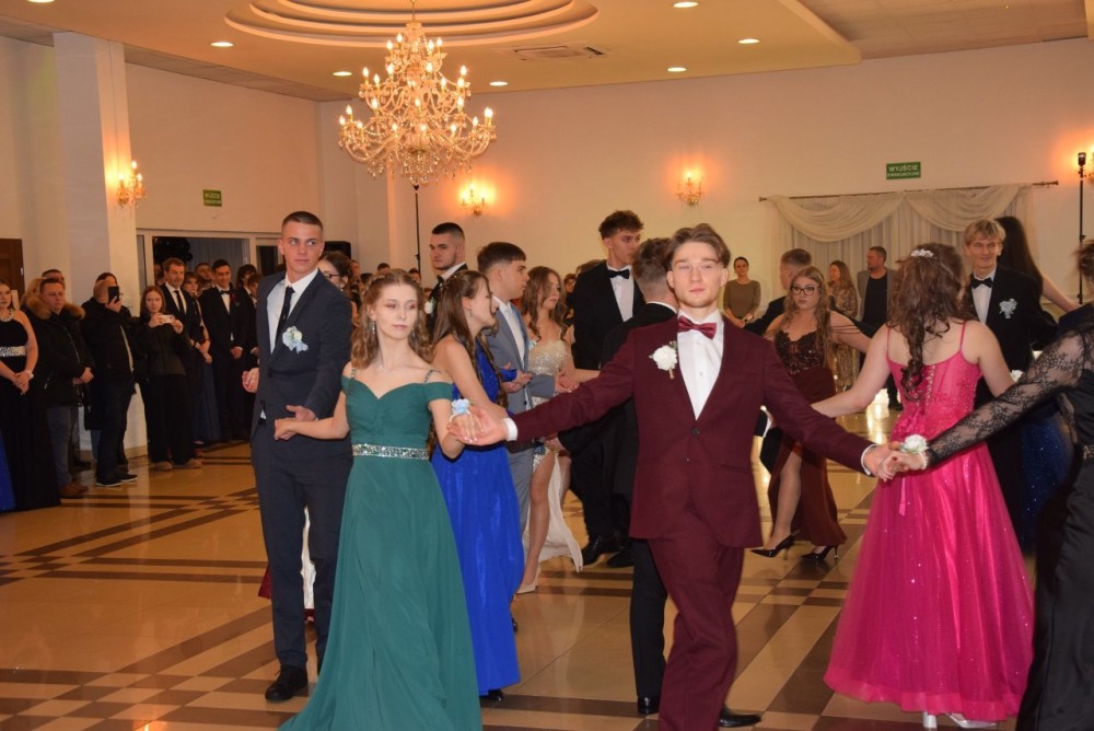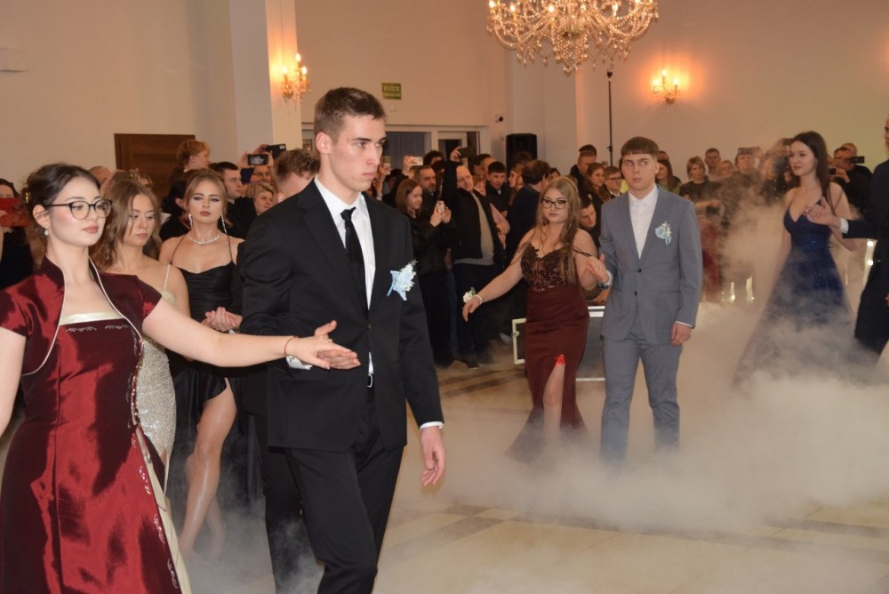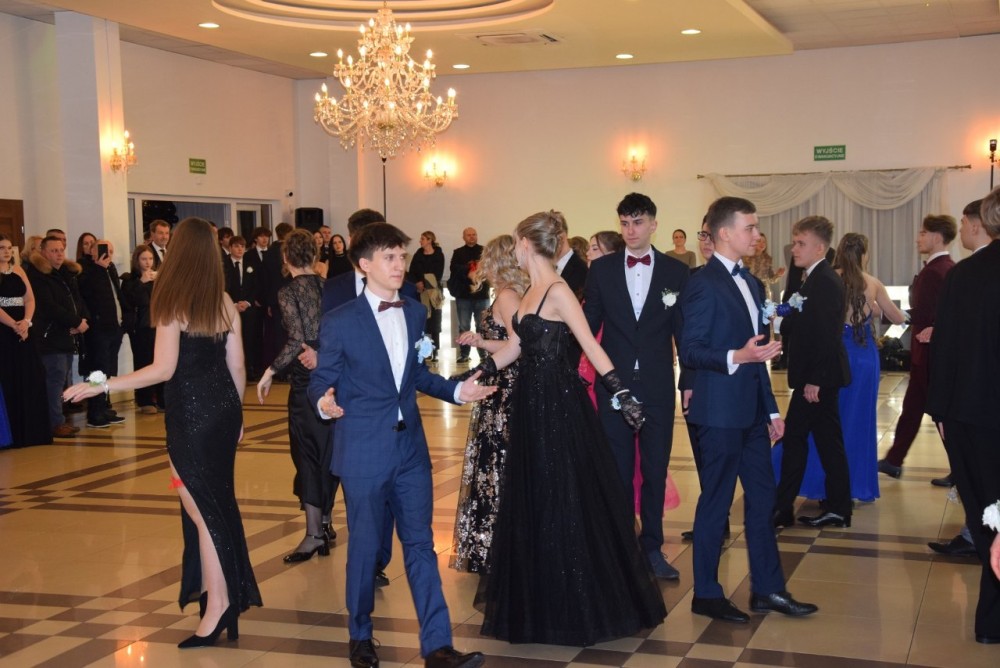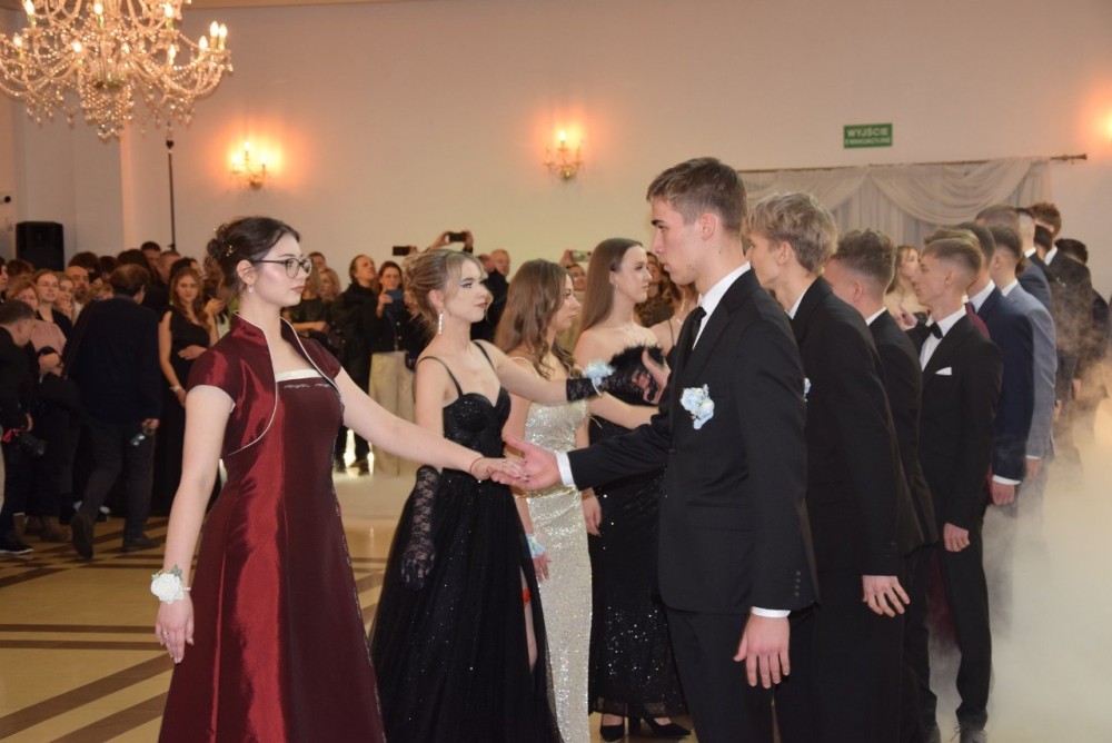 Tradycyjnie bal studniówkowy rozpoczął się od zatańczenia poloneza, do którego młodzież przygotowywała się przez kilka miesięcy.