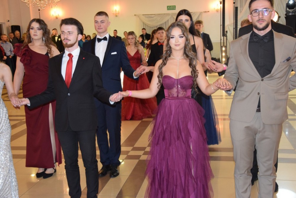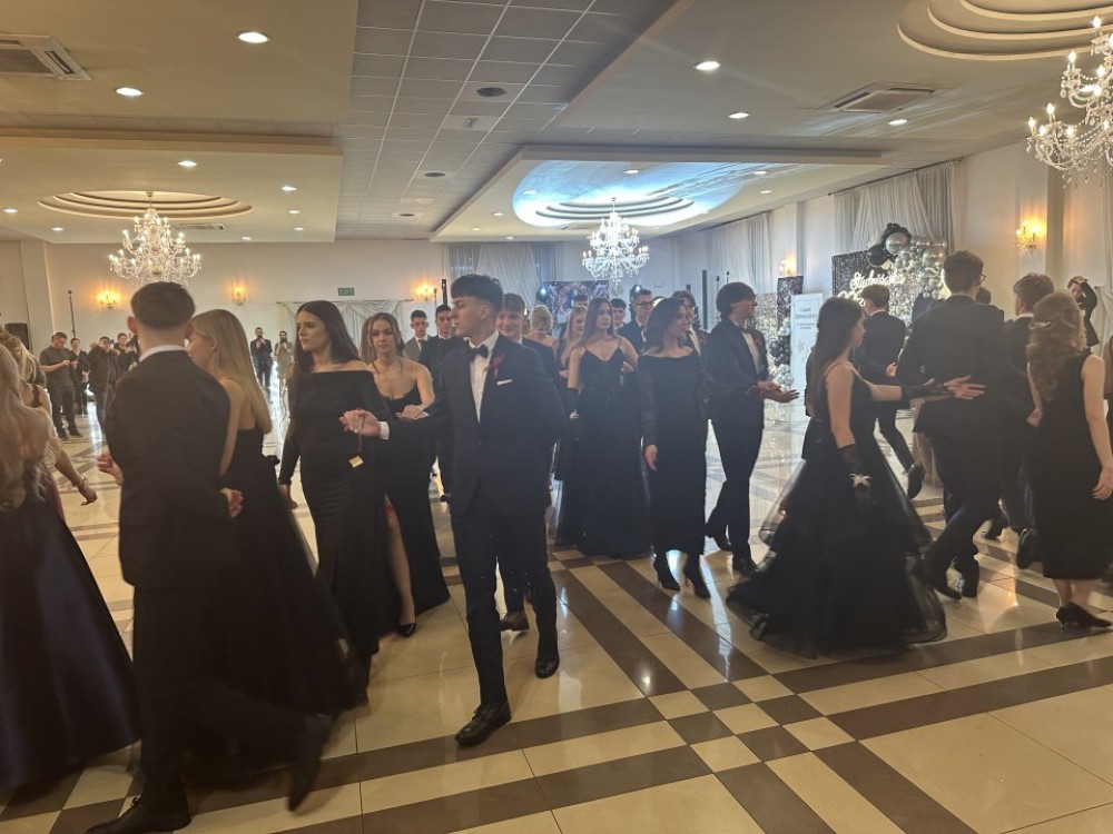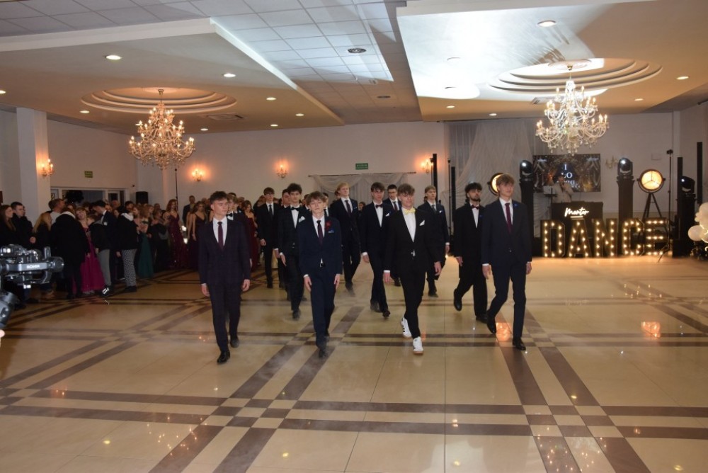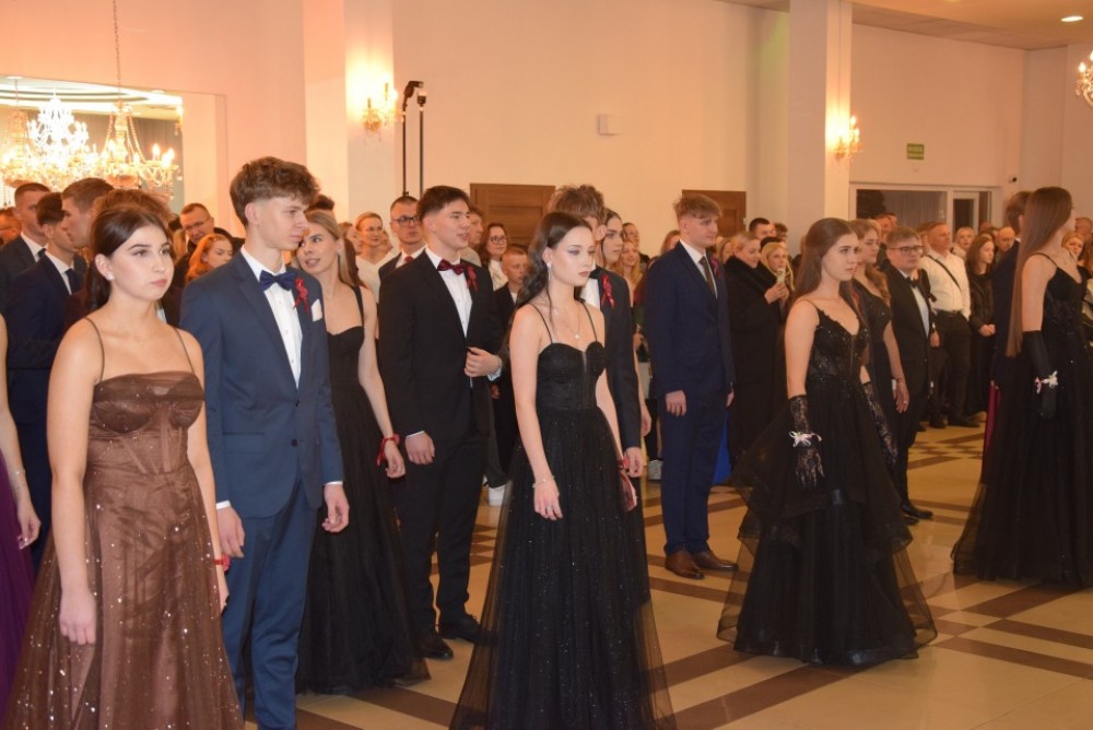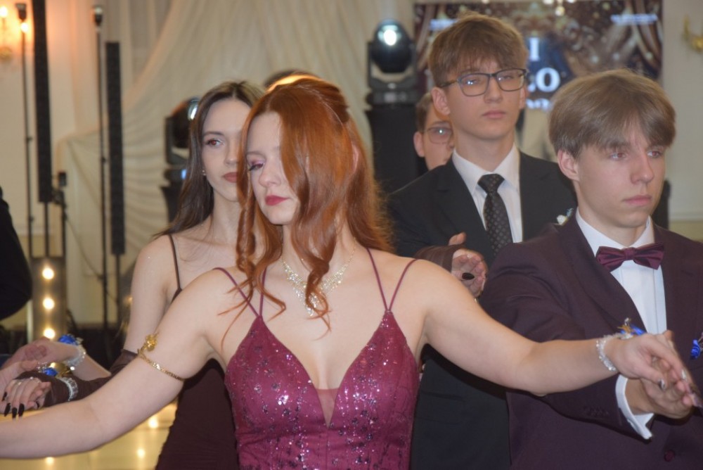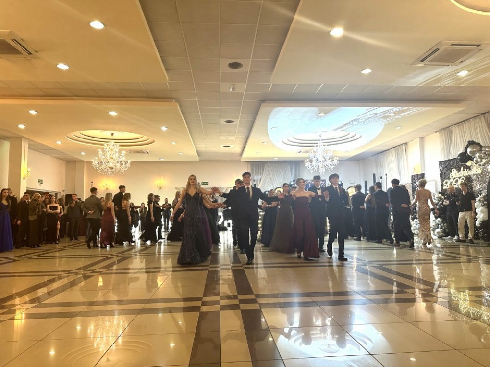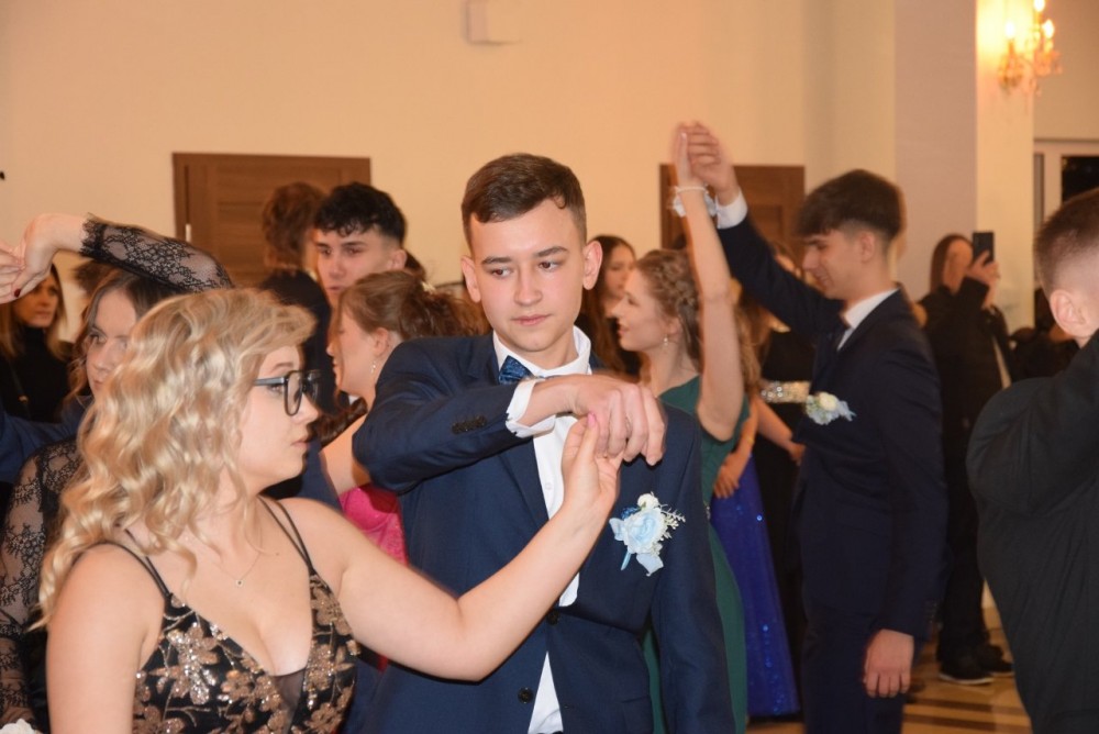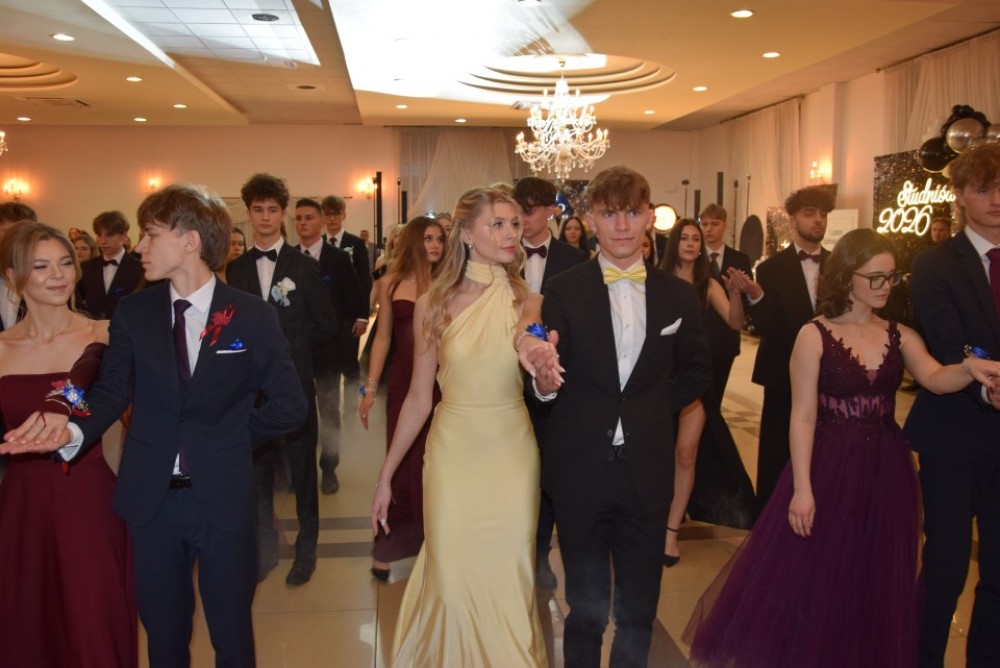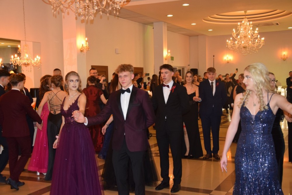Tradycyjnie bal studniówkowy rozpoczął się od zatańczenia poloneza, do którego młodzież przygotowywała się przez kilka miesięcy.