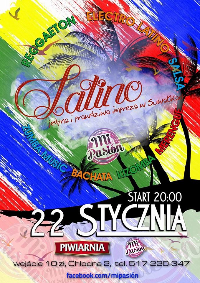 W najbliższy piÄ…tek, 22 stycznia w SuwaÅ‚kach bÄ™dzie można pobawić siÄ™ przy energicznych, gorÄ…cych, zmysÅ‚owych rytmach latino! W Warce odbÄ™dzie siÄ™ impreza pt. „Mi pasion”.Na parkiecie królować bÄ™dÄ…: reggaetan, electro latino, salsa, zumba music, bachata, kizomba i merengue. WstÄ™p – jedyne 10 zÅ‚otych. Miejsce – Warka, ul. ChÅ‚odna 2. W razie pytaÅ„: 517 220 347.