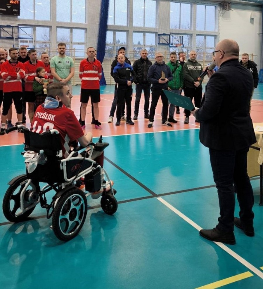 W hali Powiatowego Centrum Sportu w Sejnach byli piłkarze z całego regionu zagrali dla 42-letniego Michała Pieślaka, byłego piłkarza Wigier Suwałki, Pomorzanki Sejny, Gieretu Giby, kierownika drużyny i trenera, miłośnika biegania, który zachorował na stwardnienie zanikowe boczne.