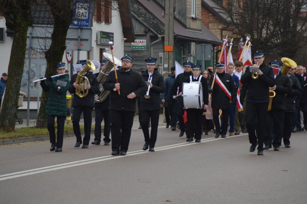 Następnie uczestnicy uroczystości przy dźwiękach Orkiestry Dętej Ochotniczej Straży Pożarnej w Raczkach pod batutą Łukasza Masłowskiego przemaszerowali pod pomnik ku czci Poległym i Pomordowanym w czasie II Wojny Światowej.